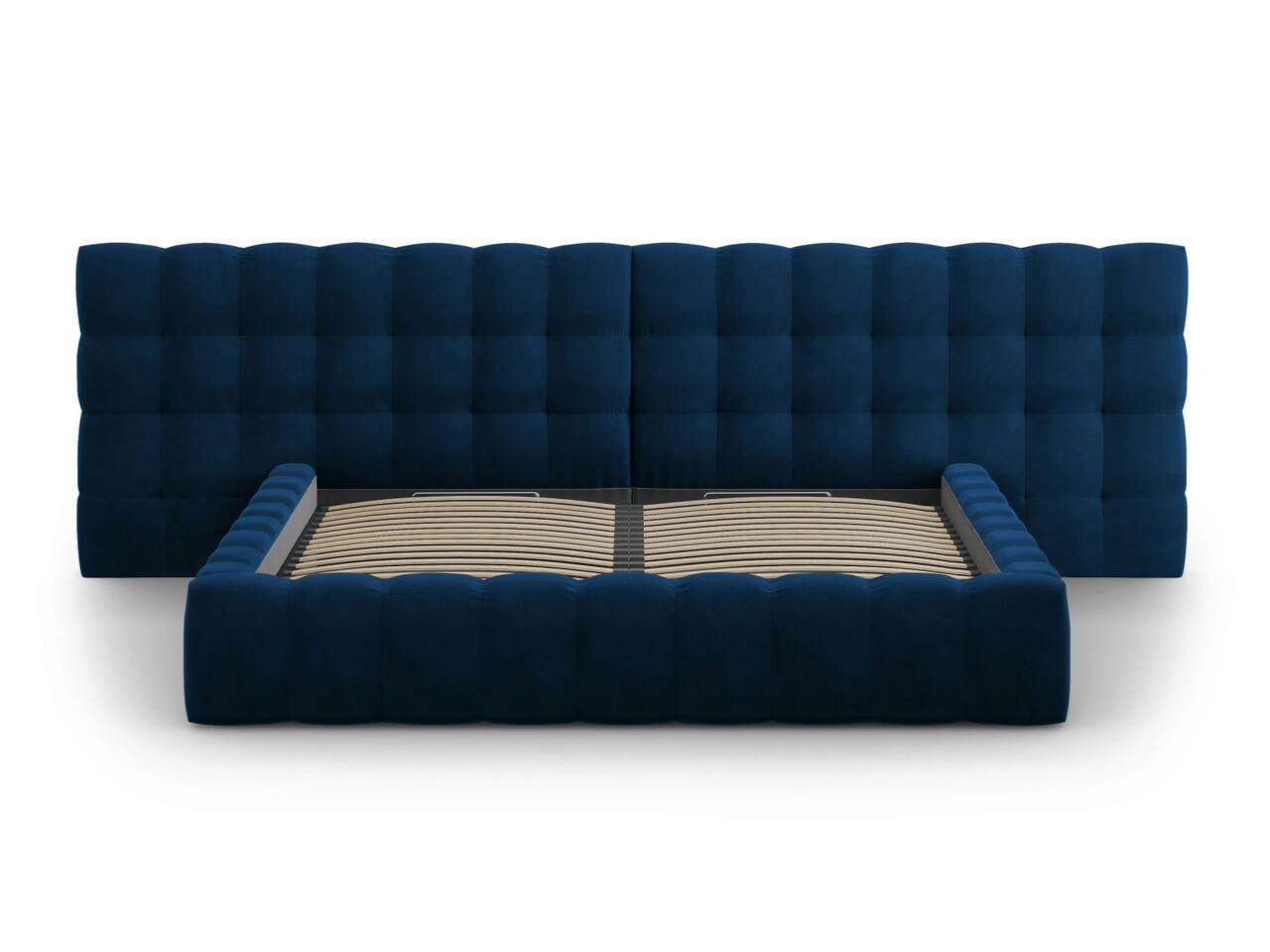 Pat tapitat cu tablie dubla si lada depozitare, Mamaia, Micadoni Home, BL, 200x200 cm, catifea, albastru regal