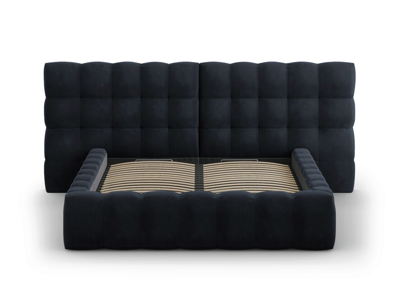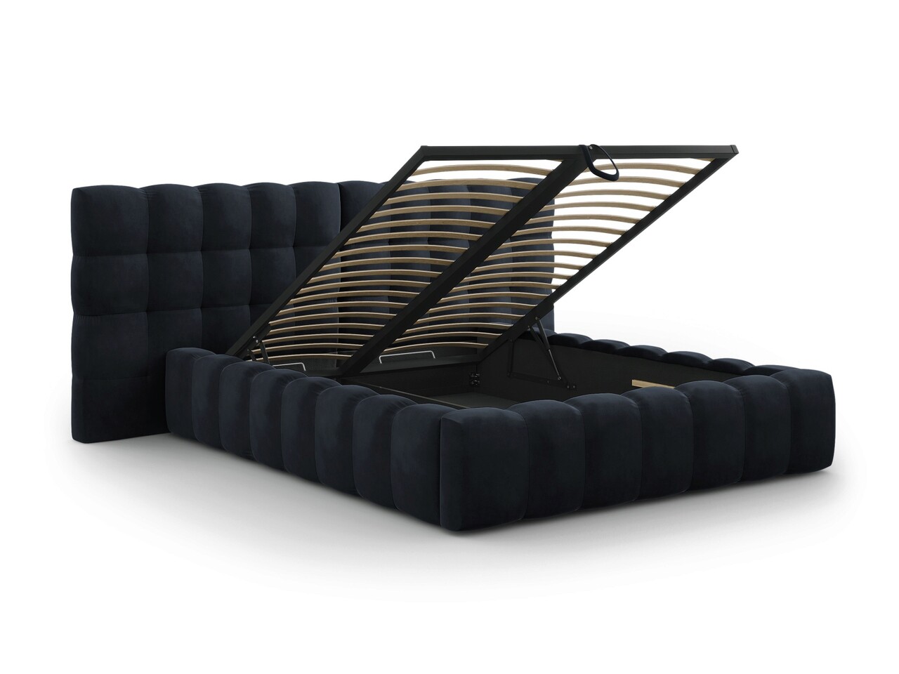 Pat tapitat cu tablie dubla si lada depozitare, Mamaia, Micadoni Home, BL, 160x200 cm, catifea, albastru inchis