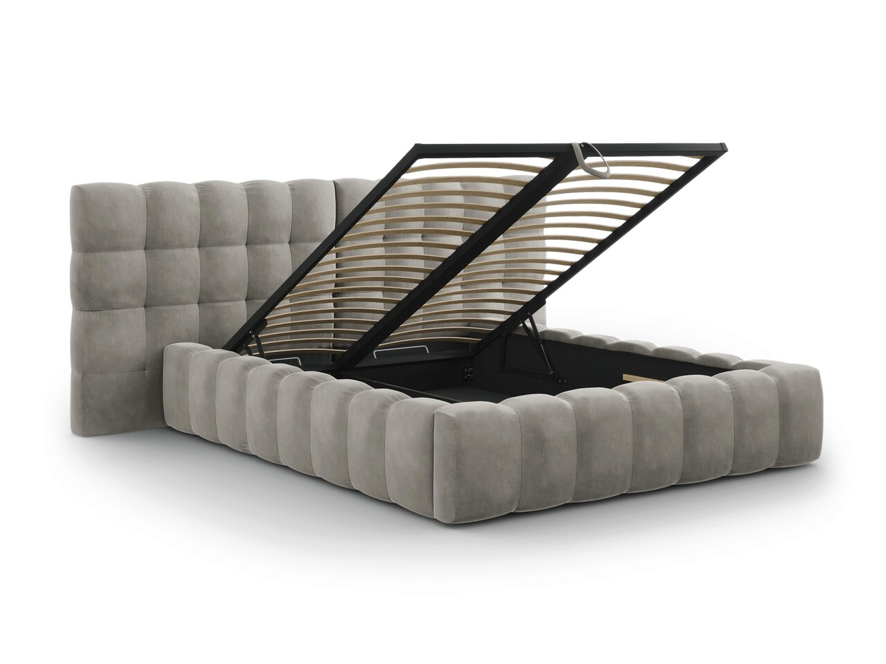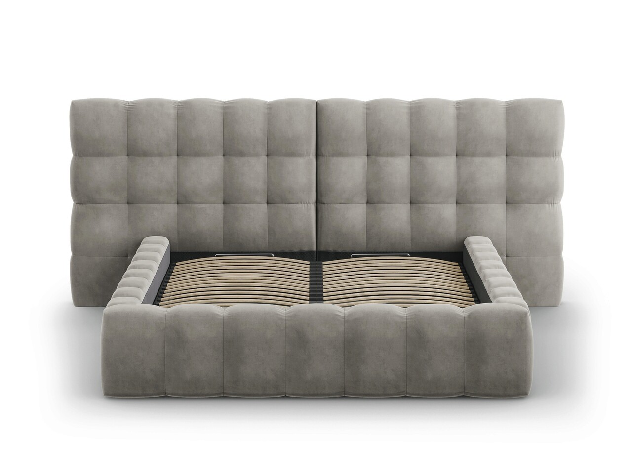 Pat tapitat cu tablie dubla si lada depozitare, Mamaia, Micadoni Home, BL, 160x200 cm, catifea, gri deschis