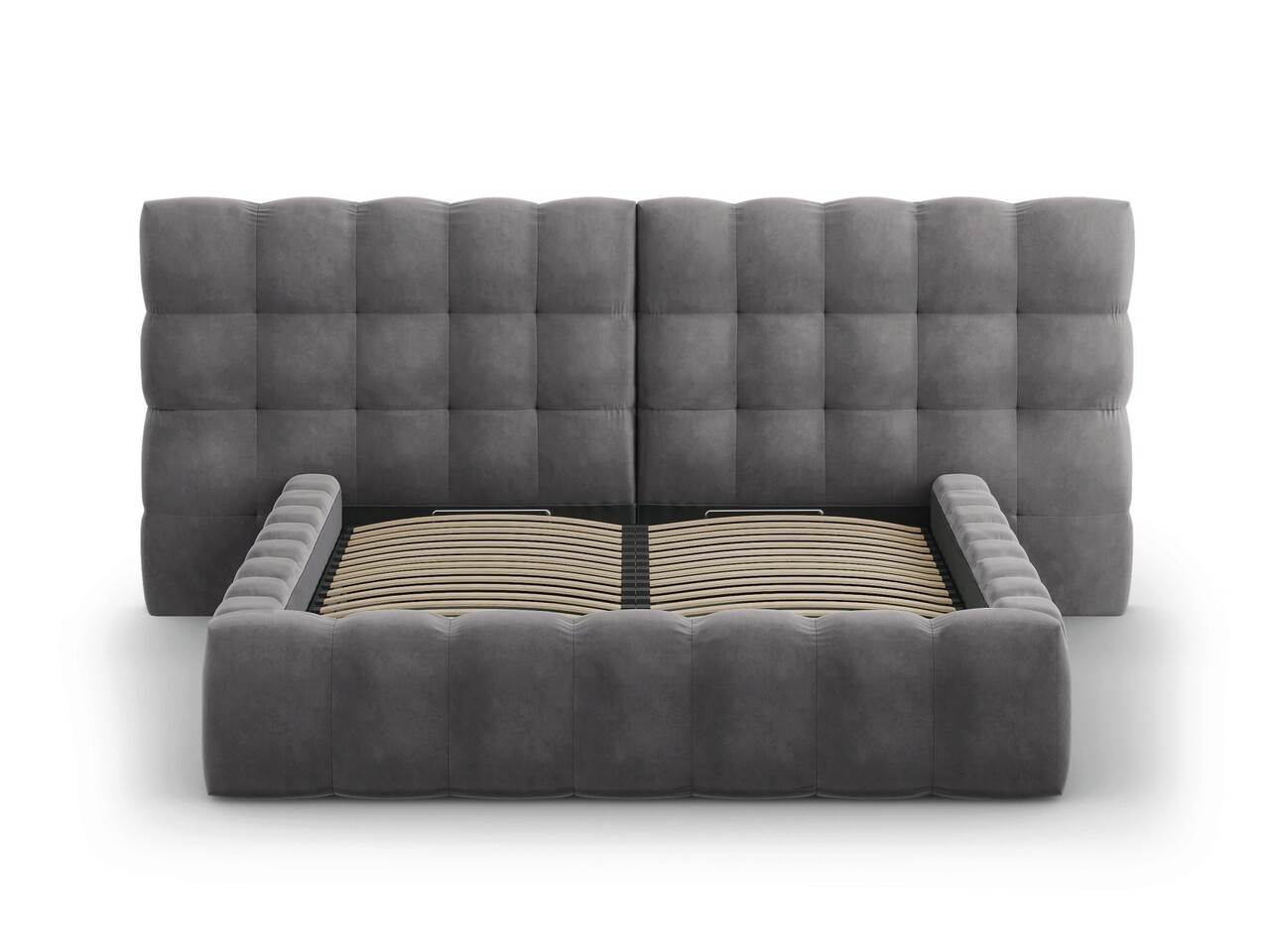 Pat tapitat cu tablie dubla si lada depozitare, Mamaia, Micadoni Home, BL, 160x200 cm, catifea, gri