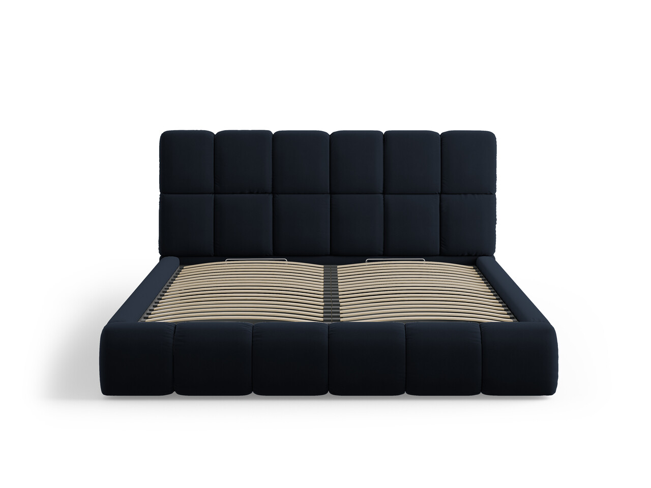 Pat tapitat cu tablie si lada depozitare, Bellis, Micadoni Home, BL, 180x200 cm, catifea, albastru inchis