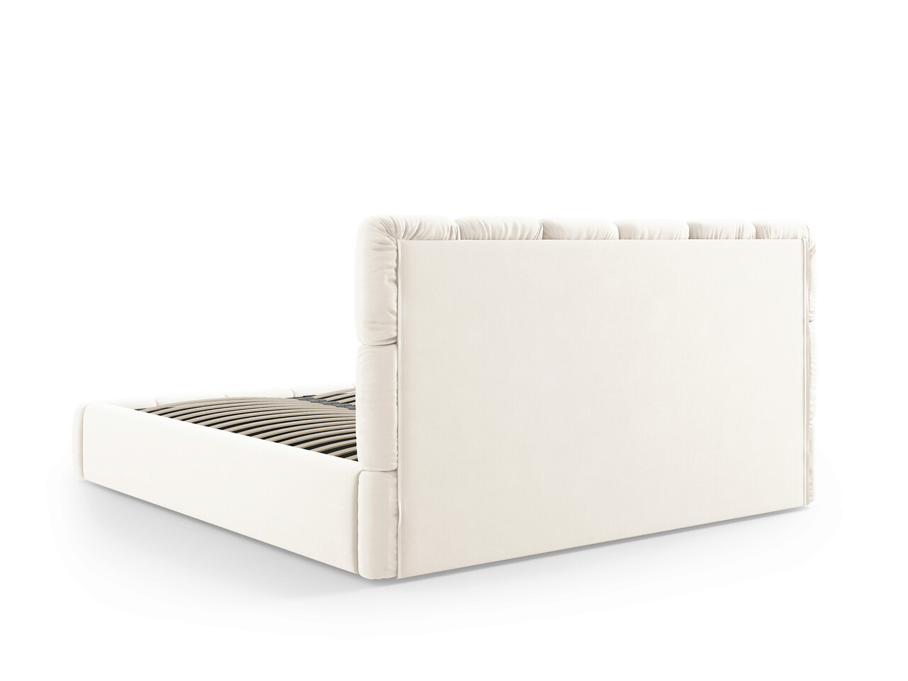 Pat tapitat cu tablie si lada depozitare, Bellis, Micadoni Home, BL, 200x200 cm, catifea, bej deschis