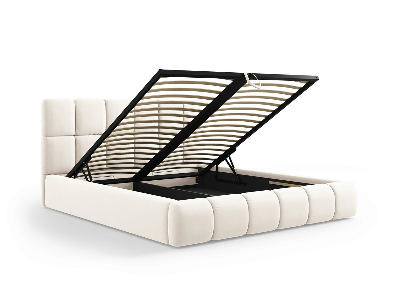 Pat tapitat cu tablie si lada depozitare, Bellis, Micadoni Home, BL, 140x200 cm, catifea, bej deschis