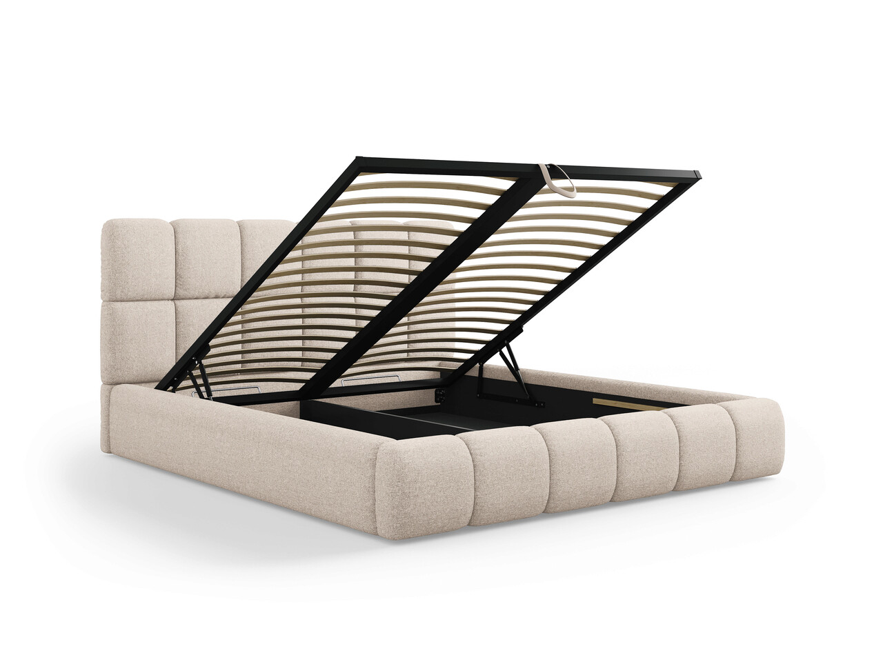 Pat tapitat cu tablie si lada depozitare, Bellis, Micadoni Home, BL, 180x200 cm, poliester chenille, bej