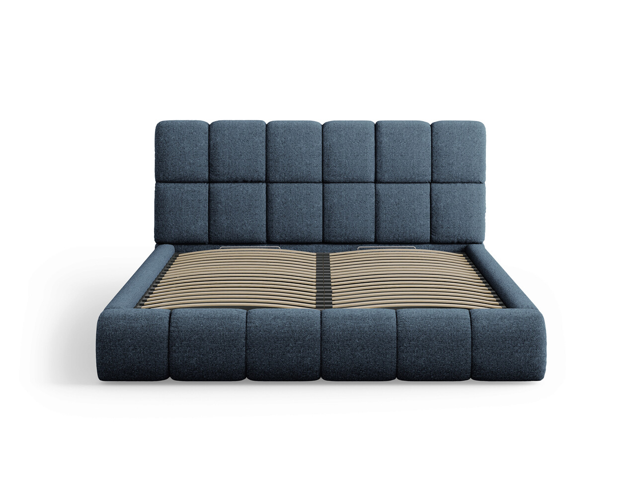 Pat tapitat cu tablie si lada depozitare, Bellis, Micadoni Home, BL, 180x200 cm, poliester chenille, albastru regal
