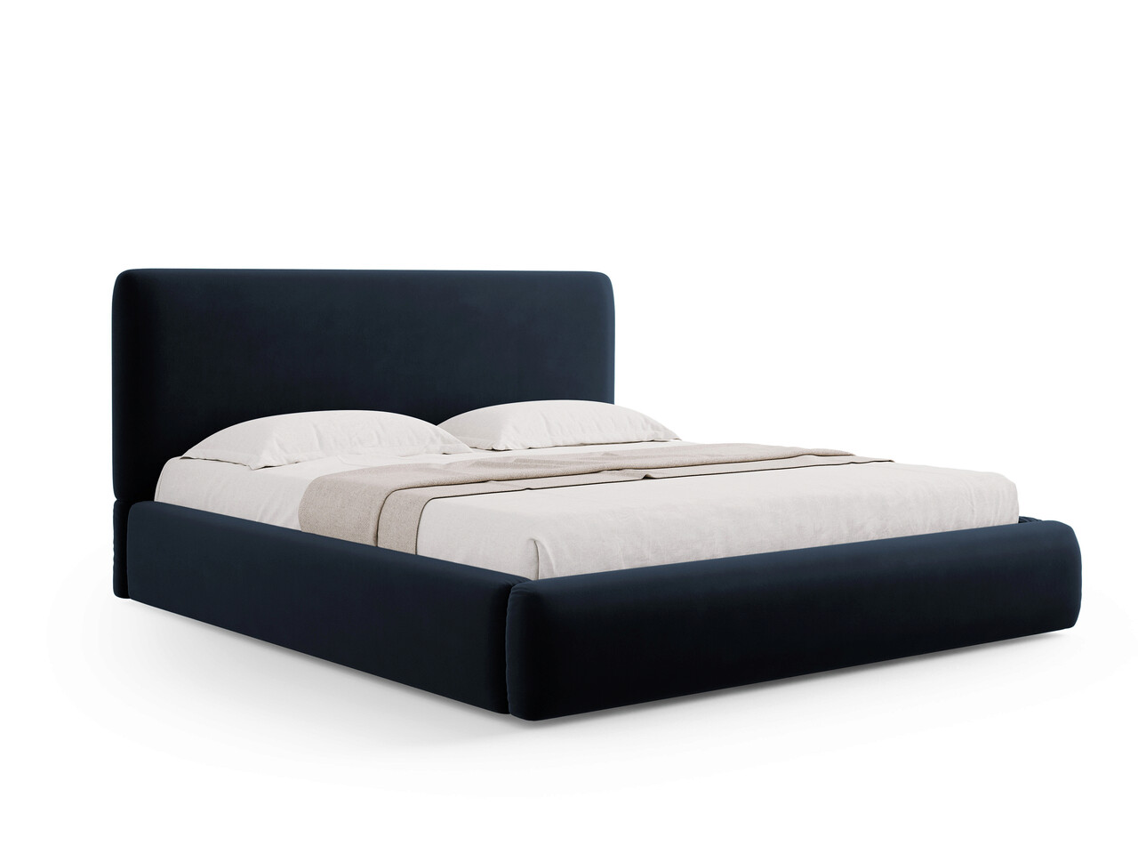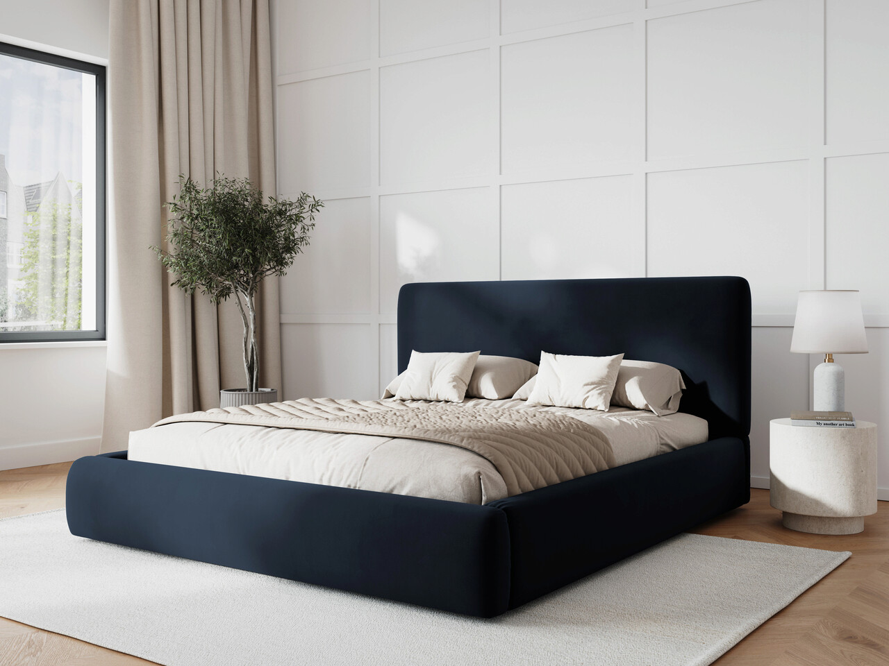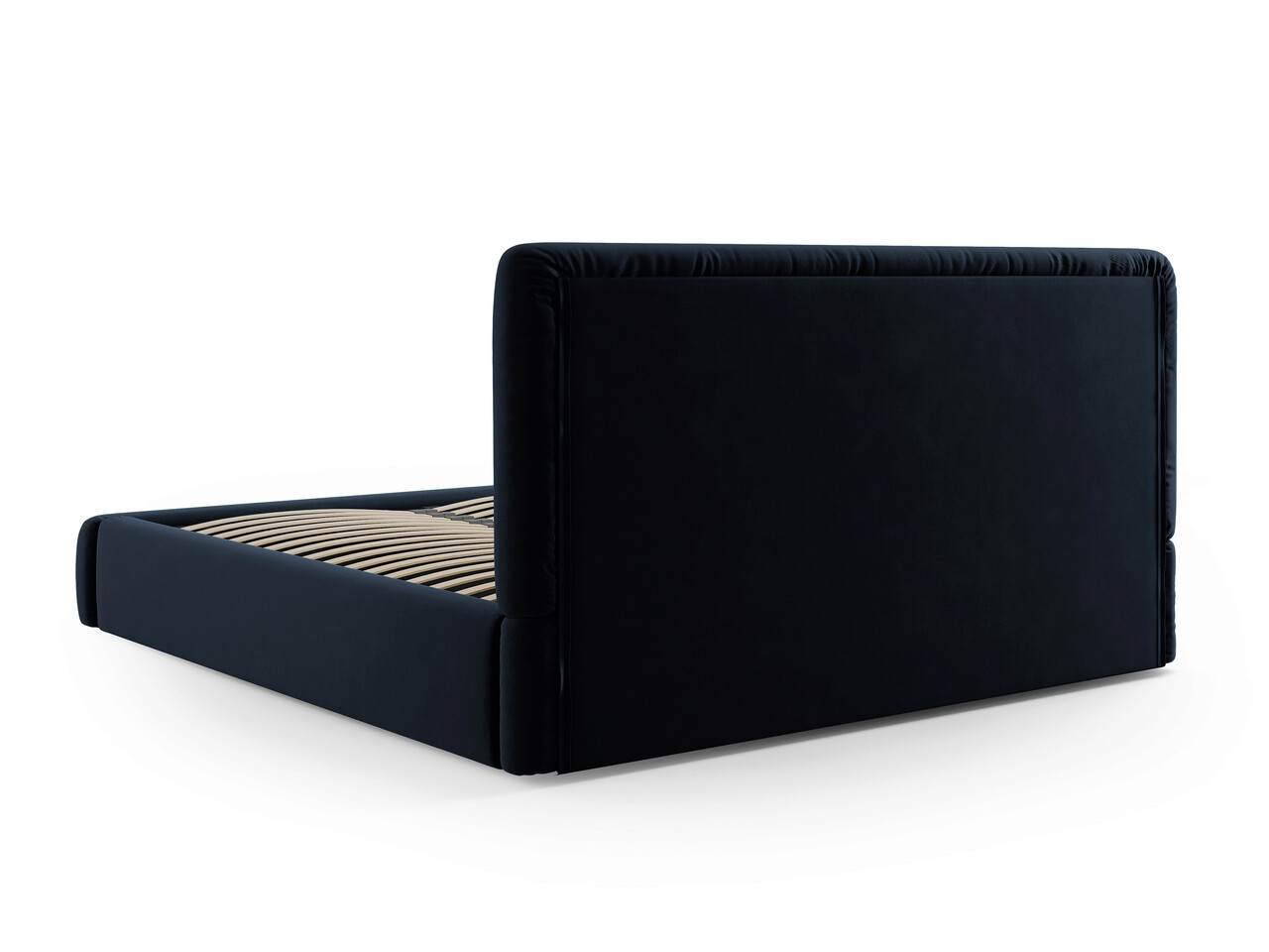 Pat tapitat cu tablie si lada depozitare, Colonel, Cosmopolitan Design, 160x200 cm, catifea, albastru inchis