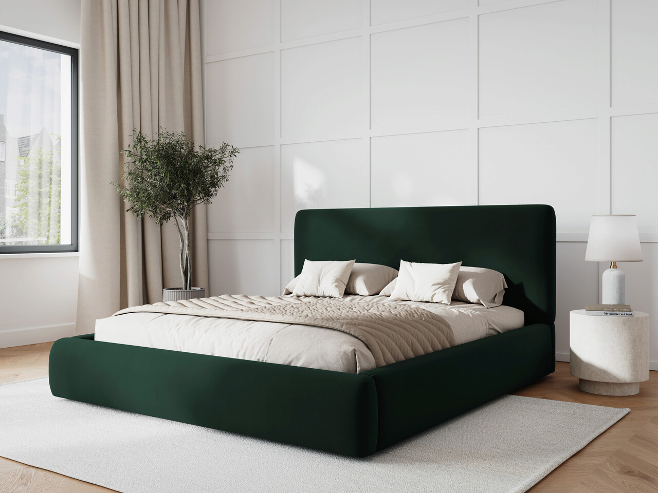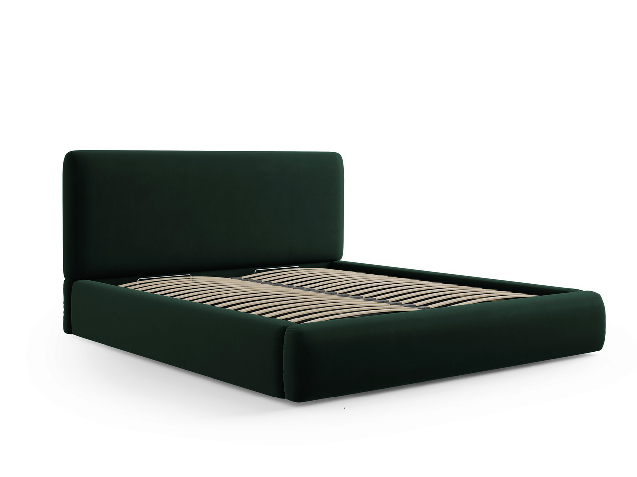 Pat tapitat cu tablie si lada depozitare, Colonel, Cosmopolitan Design, 160x200 cm, catifea, verde bottle