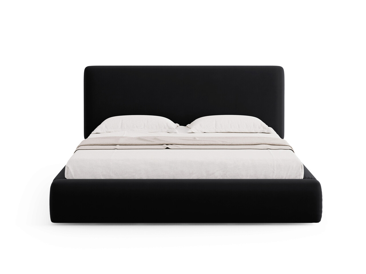 Pat tapitat cu tablie si lada depozitare, Colonel, Cosmopolitan Design, 160x200 cm, catifea, negru