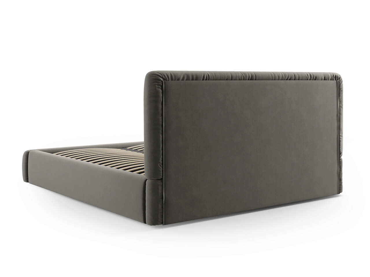 Pat tapitat cu tablie si lada depozitare, Colonel, Cosmopolitan Design, 180x200 cm, catifea, gri deschis