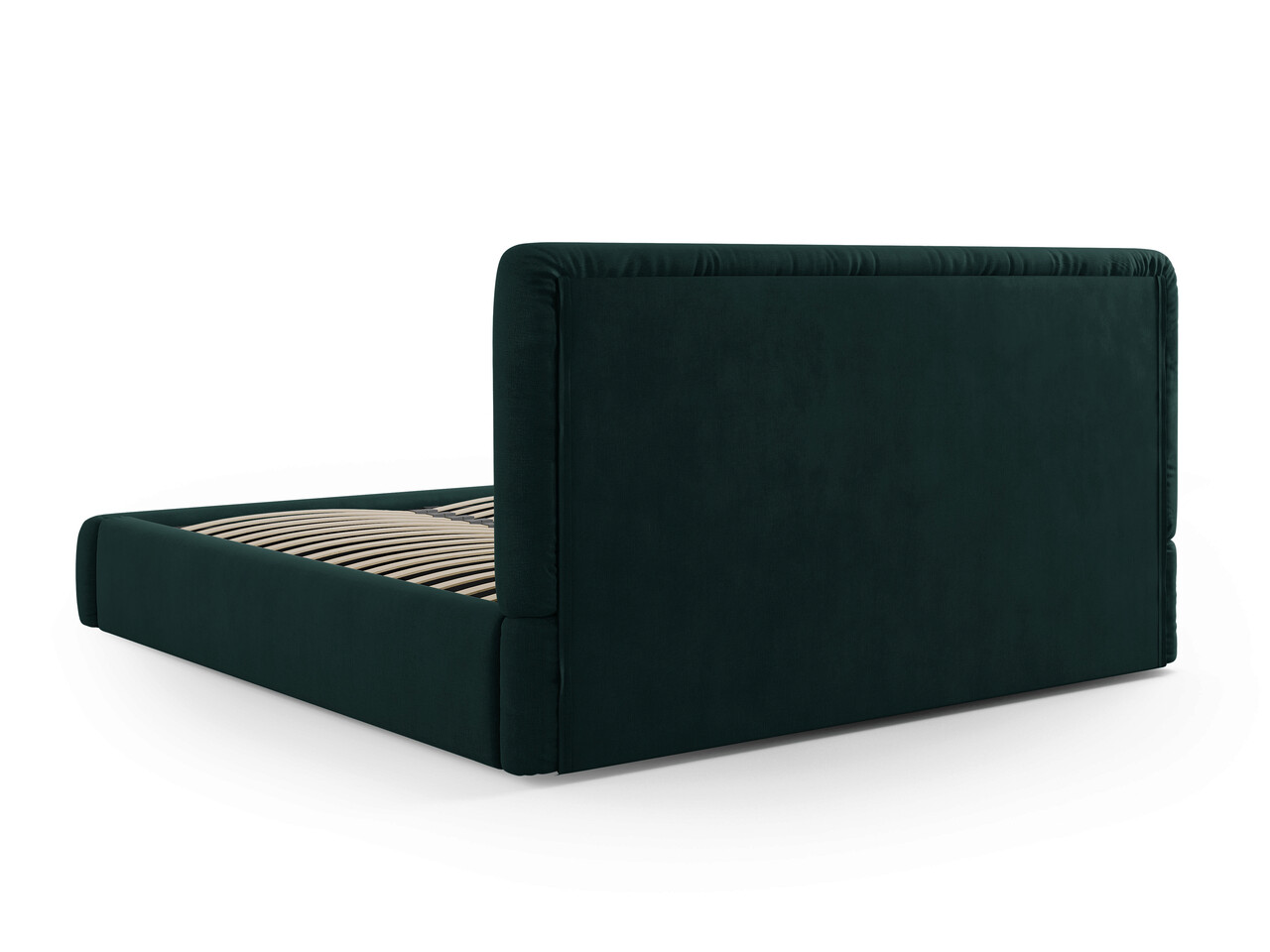 Pat tapitat cu tablie si lada depozitare, Colonel, Cosmopolitan Design, 180x200 cm, material structurat, verde bottle