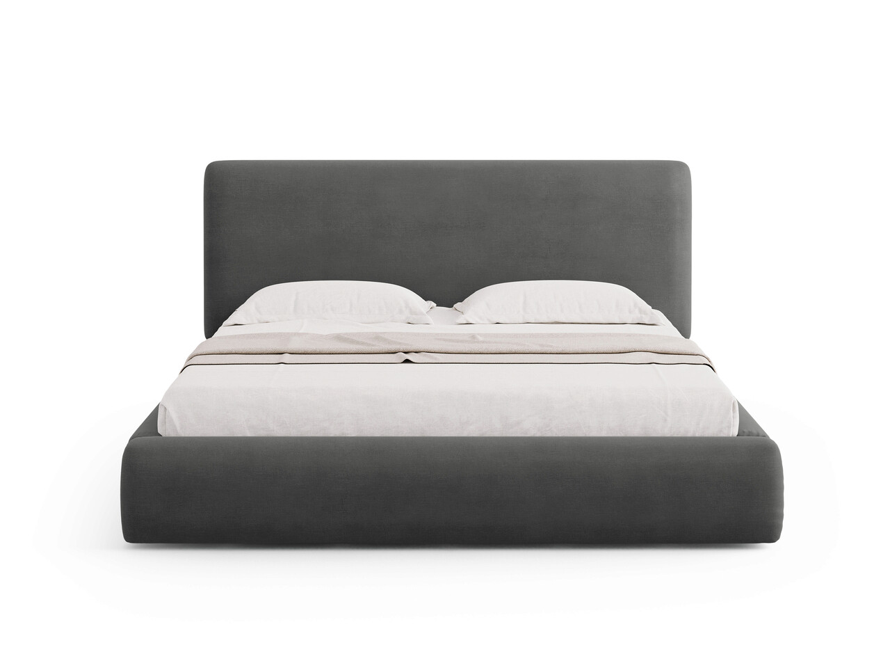 Pat tapitat cu tablie si lada depozitare, Colonel, Cosmopolitan Design, 200x200 cm, material structurat, gri inchis