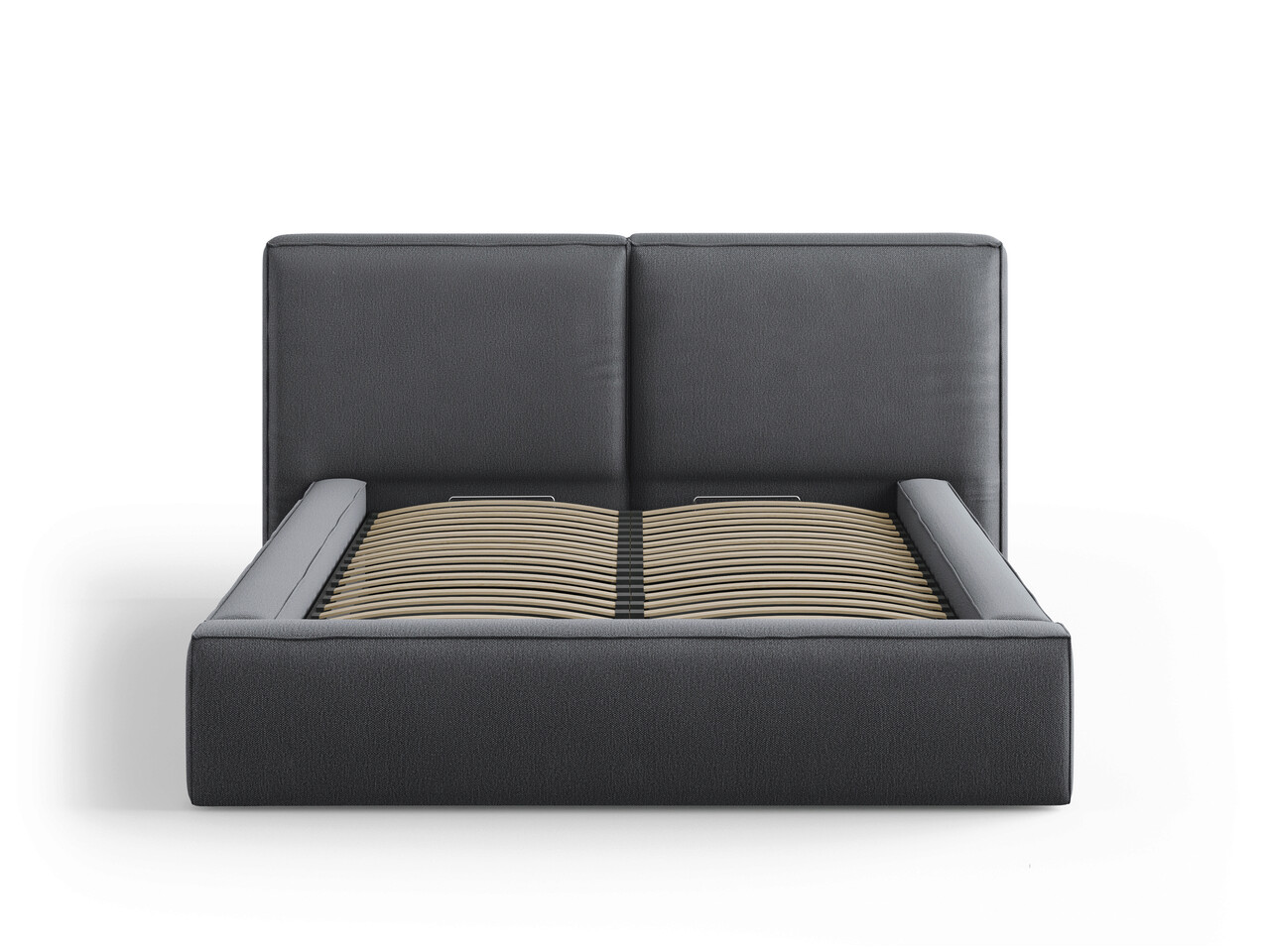 Pat tapitat cu tablie si lada depozitare, Jodie, Micadoni Home, BL, 140x200 cm, poliester, gri inchis