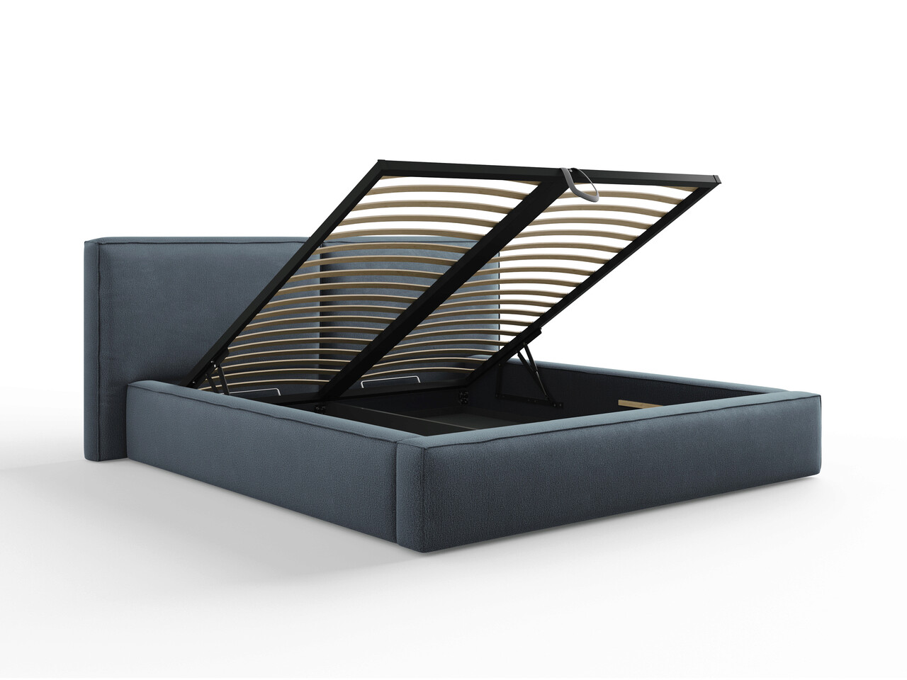Pat tapitat cu tablie si lada depozitare, Jodie, Micadoni Home, BL, 180x200 cm, poliester, albastru