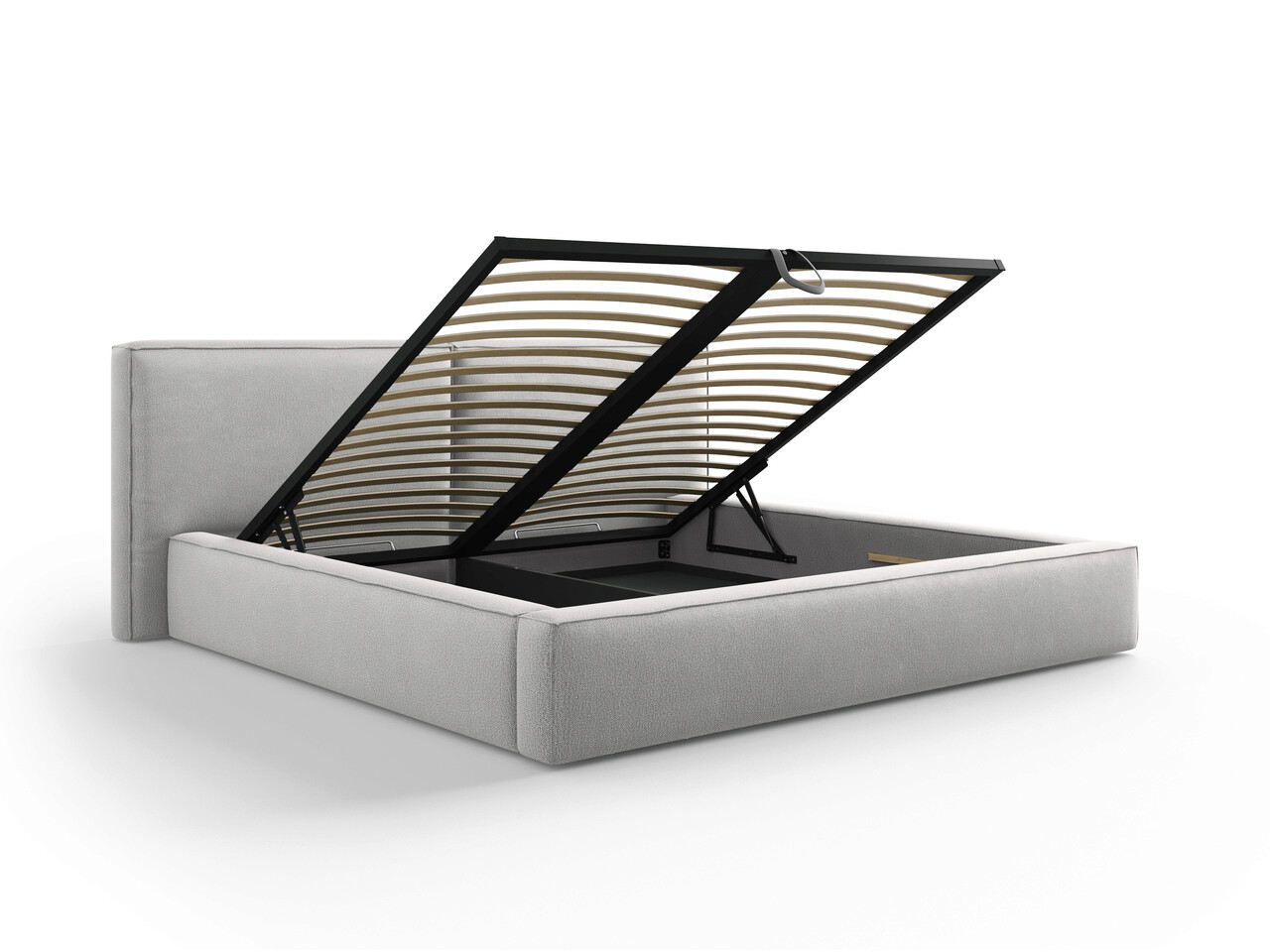 Pat tapitat cu tablie si lada depozitare, Jodie, Micadoni Home, BL, 200x200 cm, poliester, gri deschis