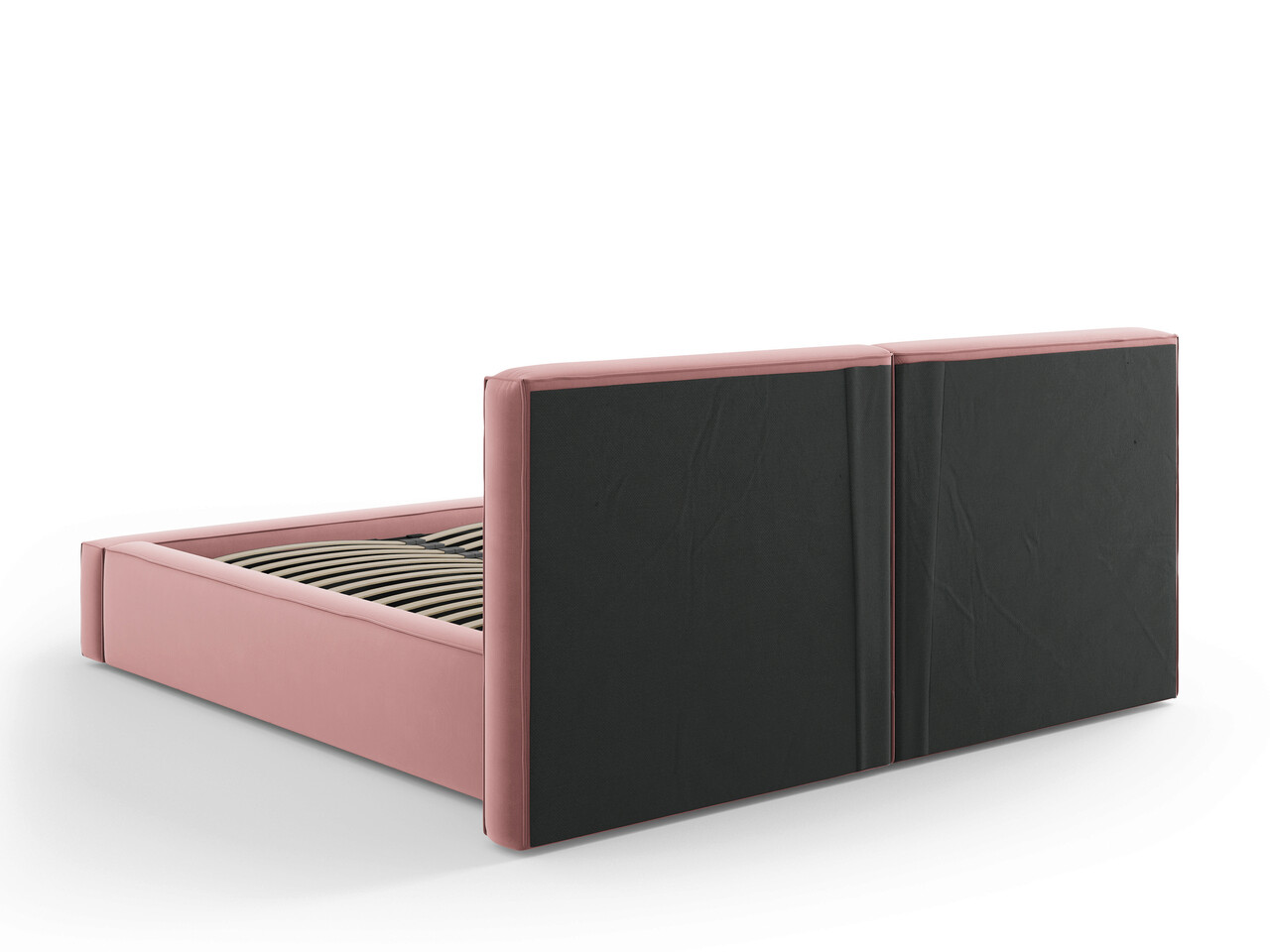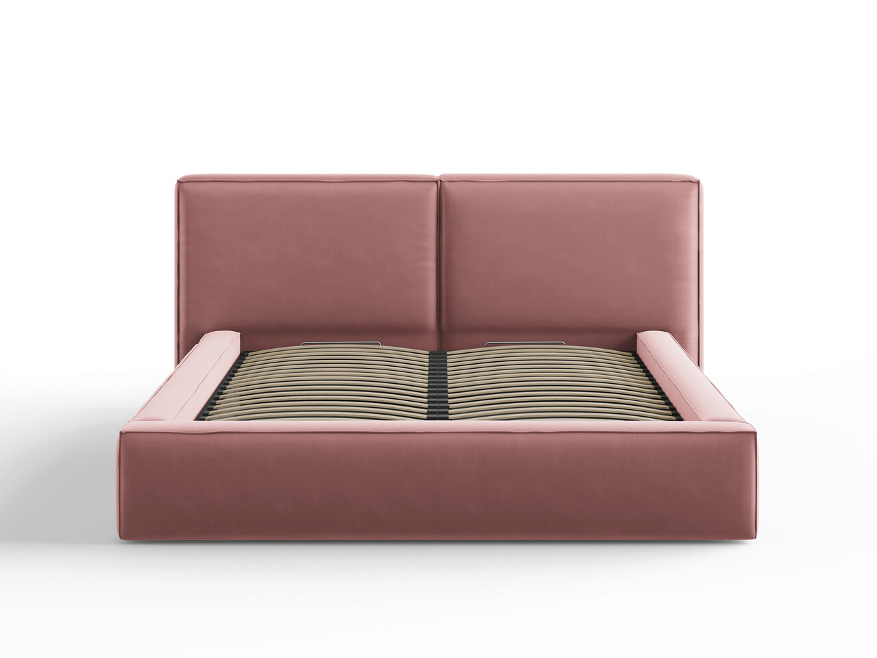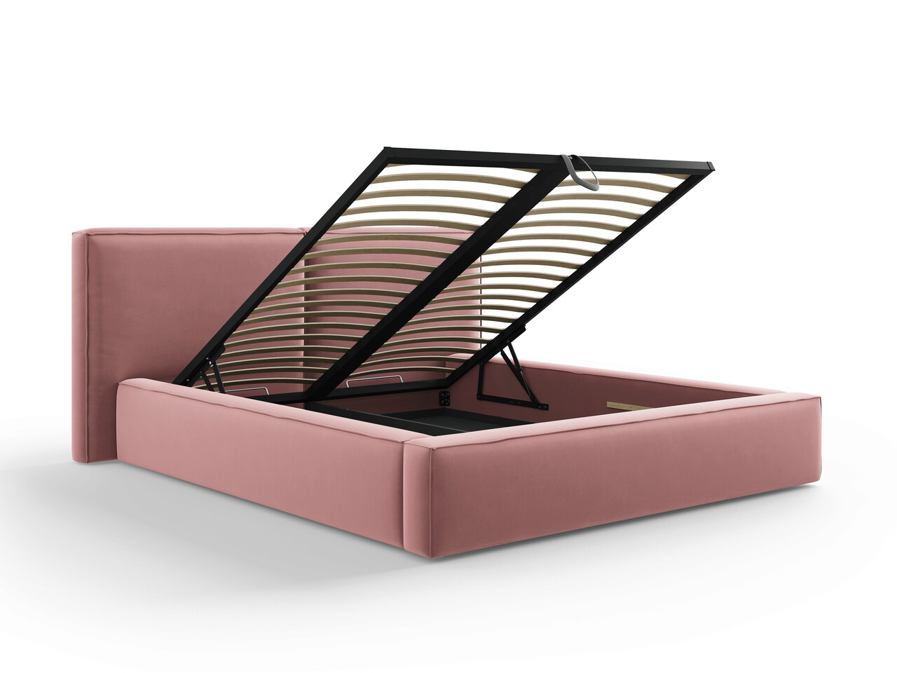 Pat tapitat cu tablie si lada depozitare, Jodie, Micadoni Home, BL, 160x200 cm, catifea, roz