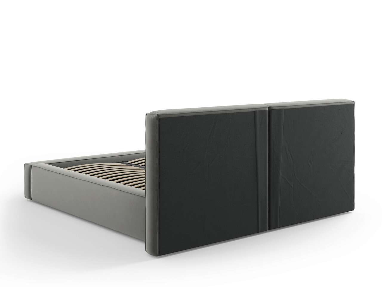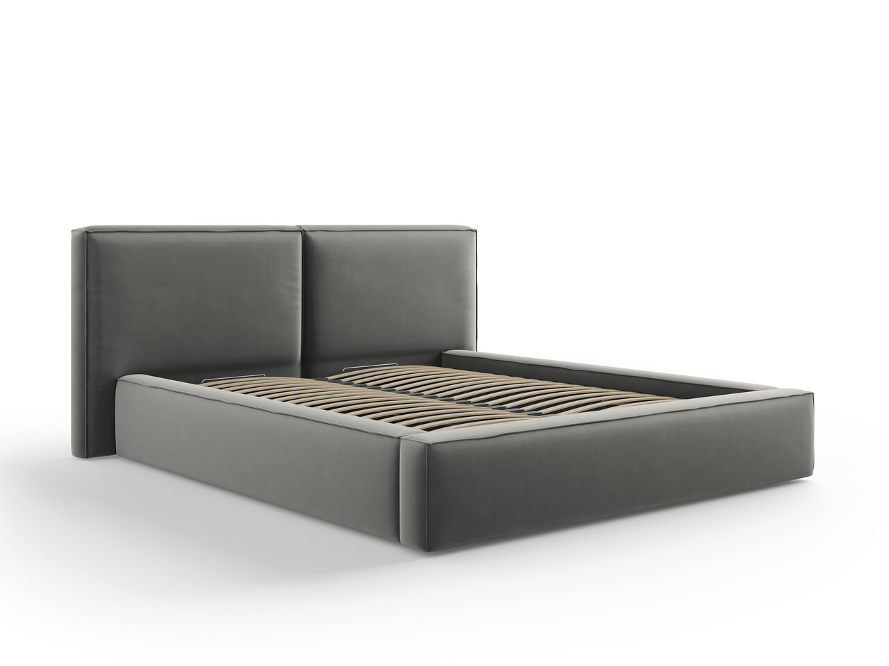 Pat tapitat cu tablie si lada depozitare, Jodie, Micadoni Home, BL, 160x200 cm, catifea, gri deschis