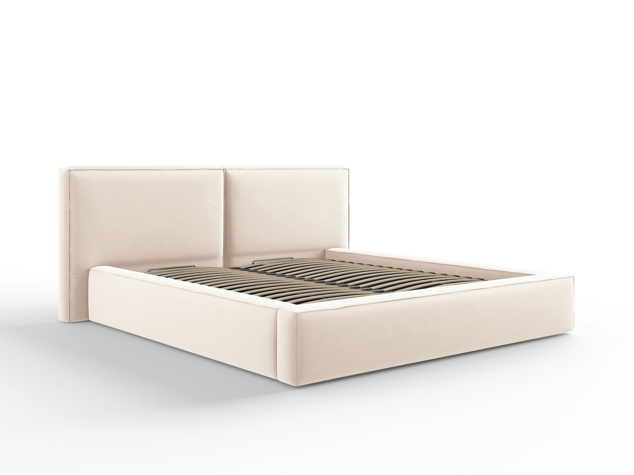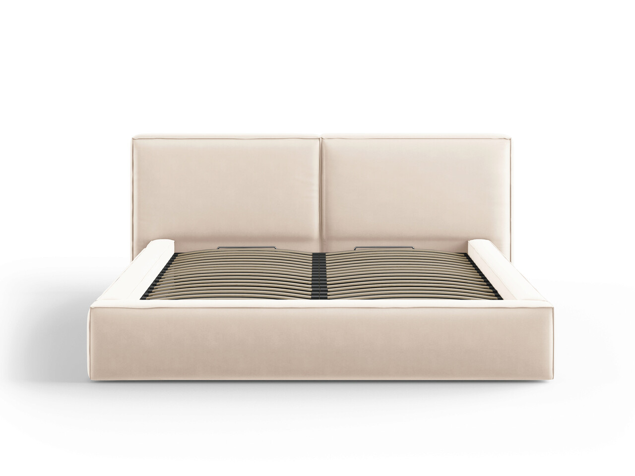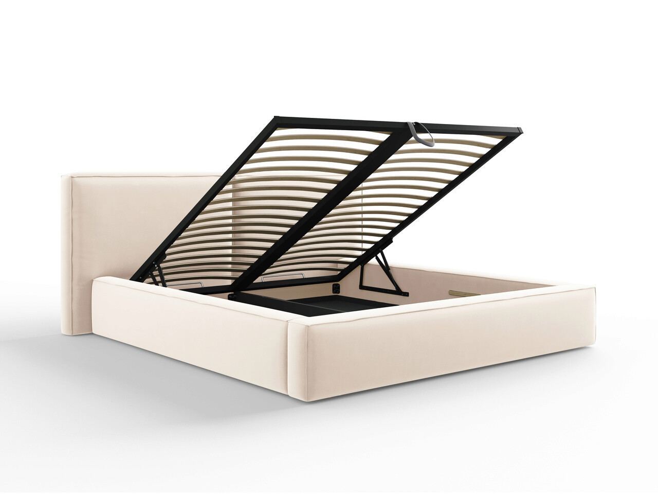 Pat tapitat cu tablie si lada depozitare, Jodie, Micadoni Home, BL, 180x200 cm, catifea, bej deschis