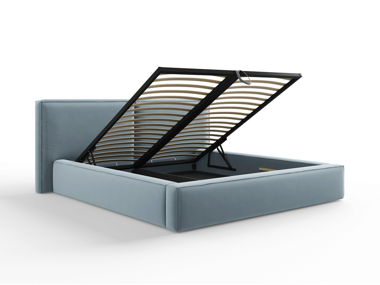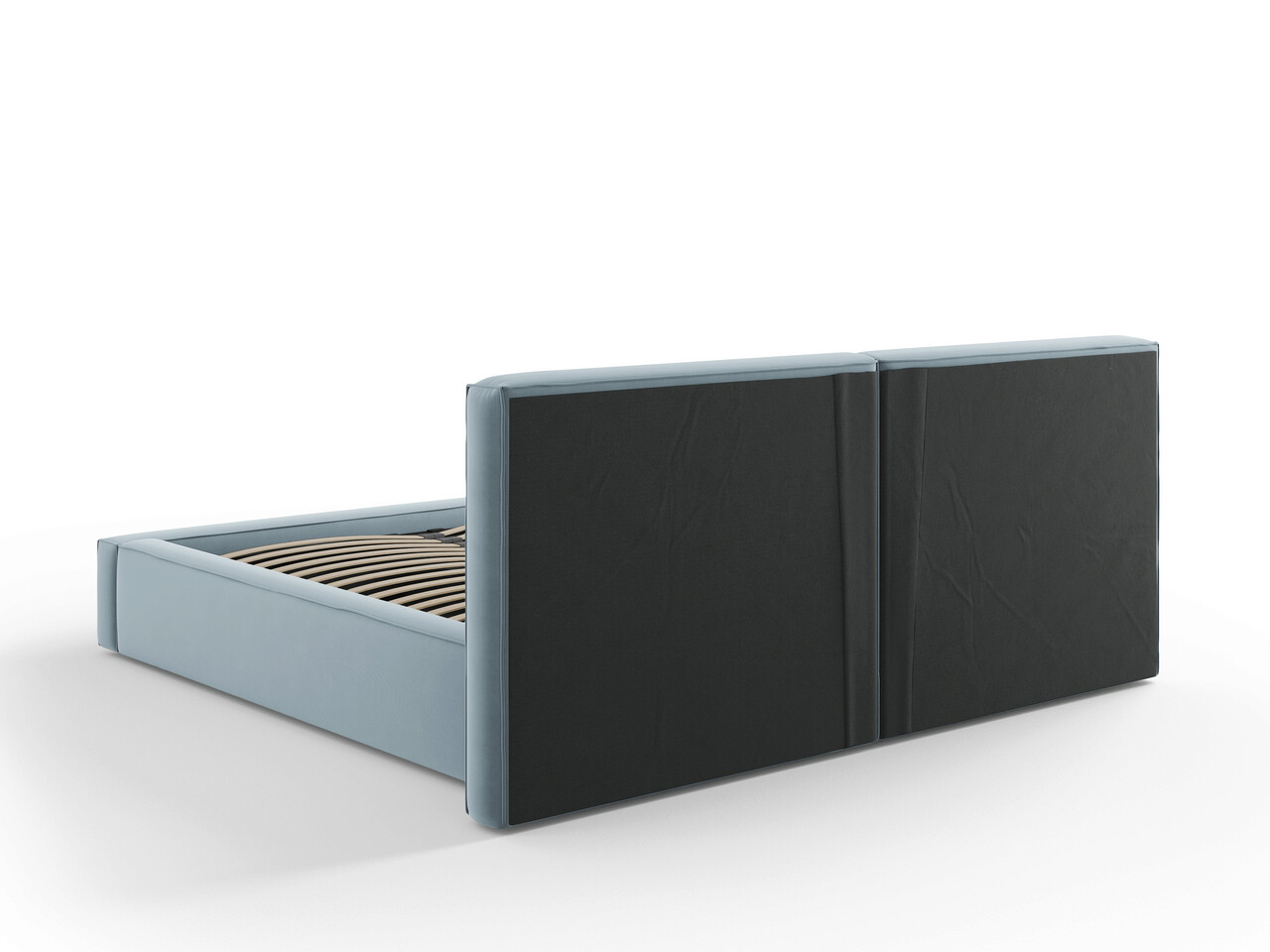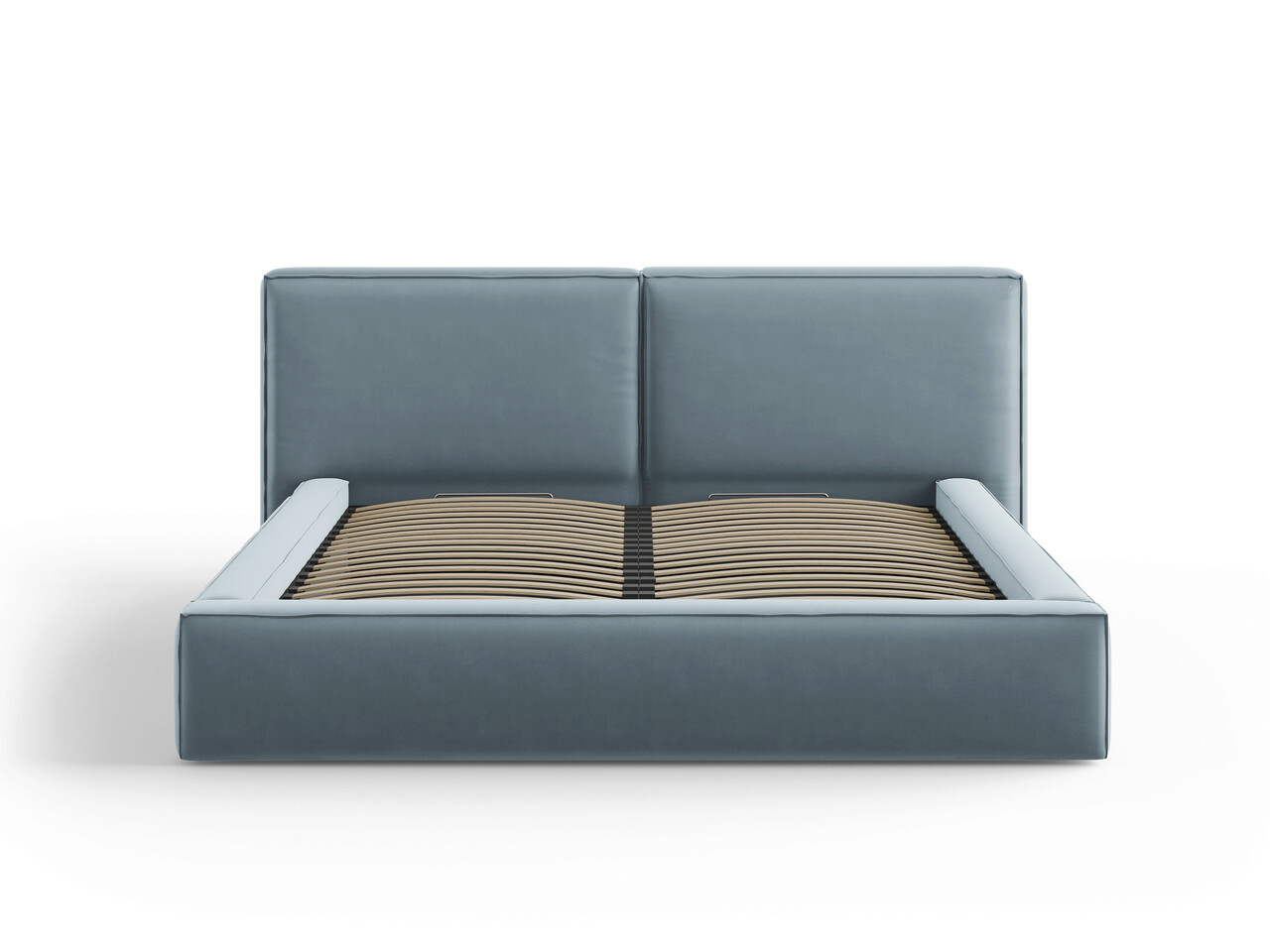 Pat tapitat cu tablie si lada depozitare, Jodie, Micadoni Home, BL, 180x200 cm, catifea, albastru deschis