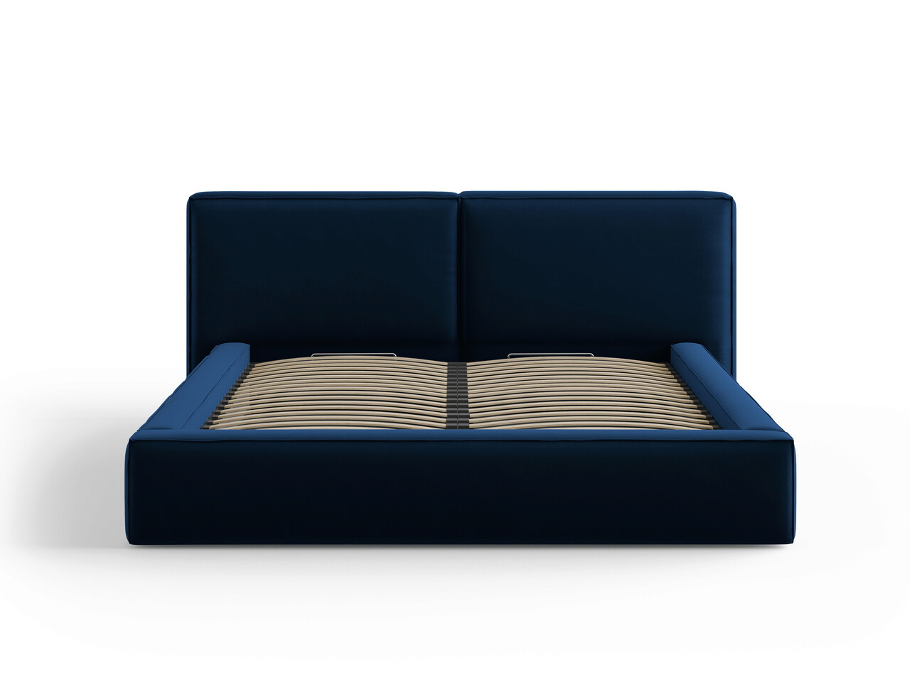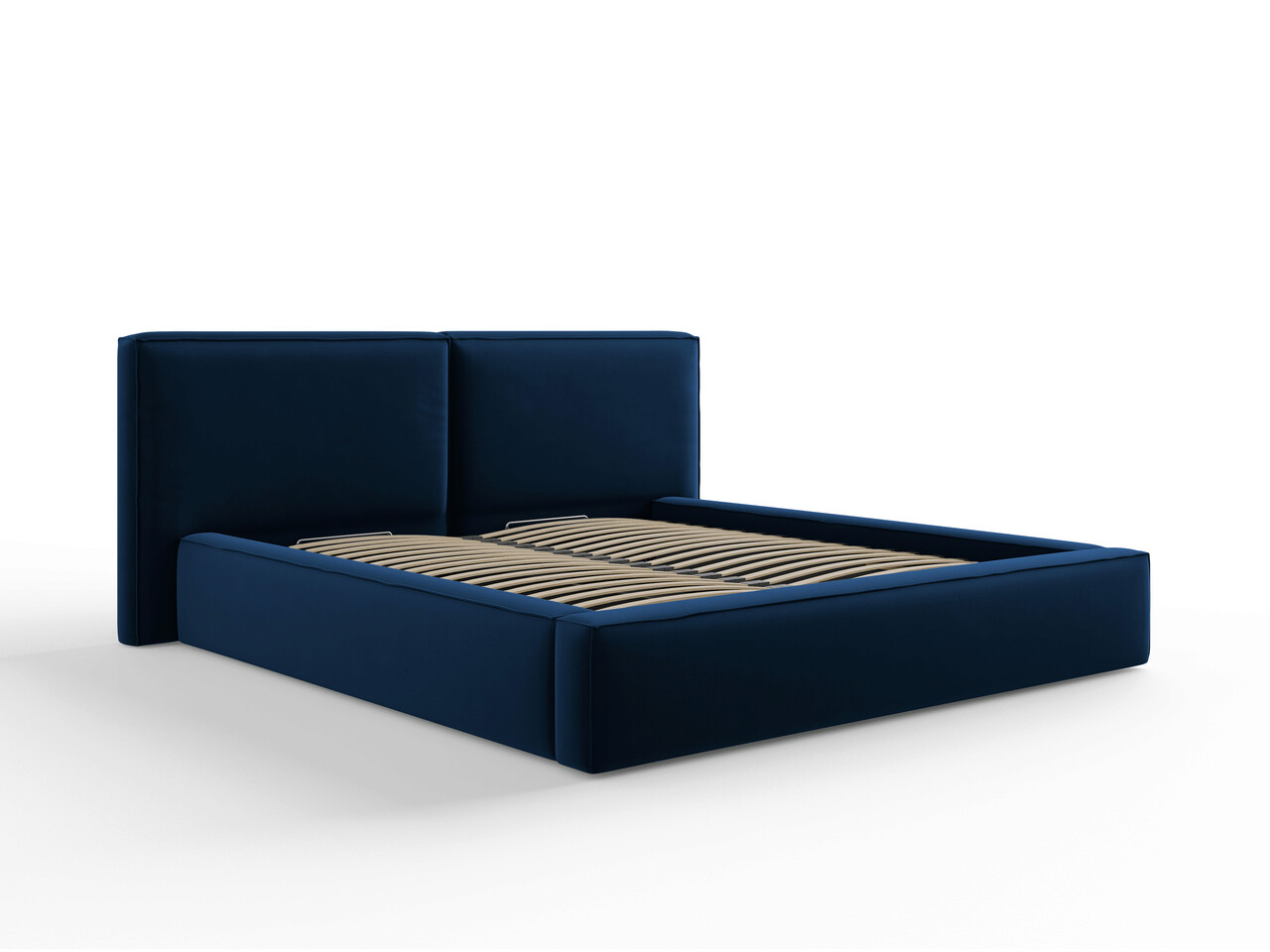 Pat tapitat cu tablie si lada depozitare, Jodie, Micadoni Home, BL, 180x200 cm, catifea, albastru regal