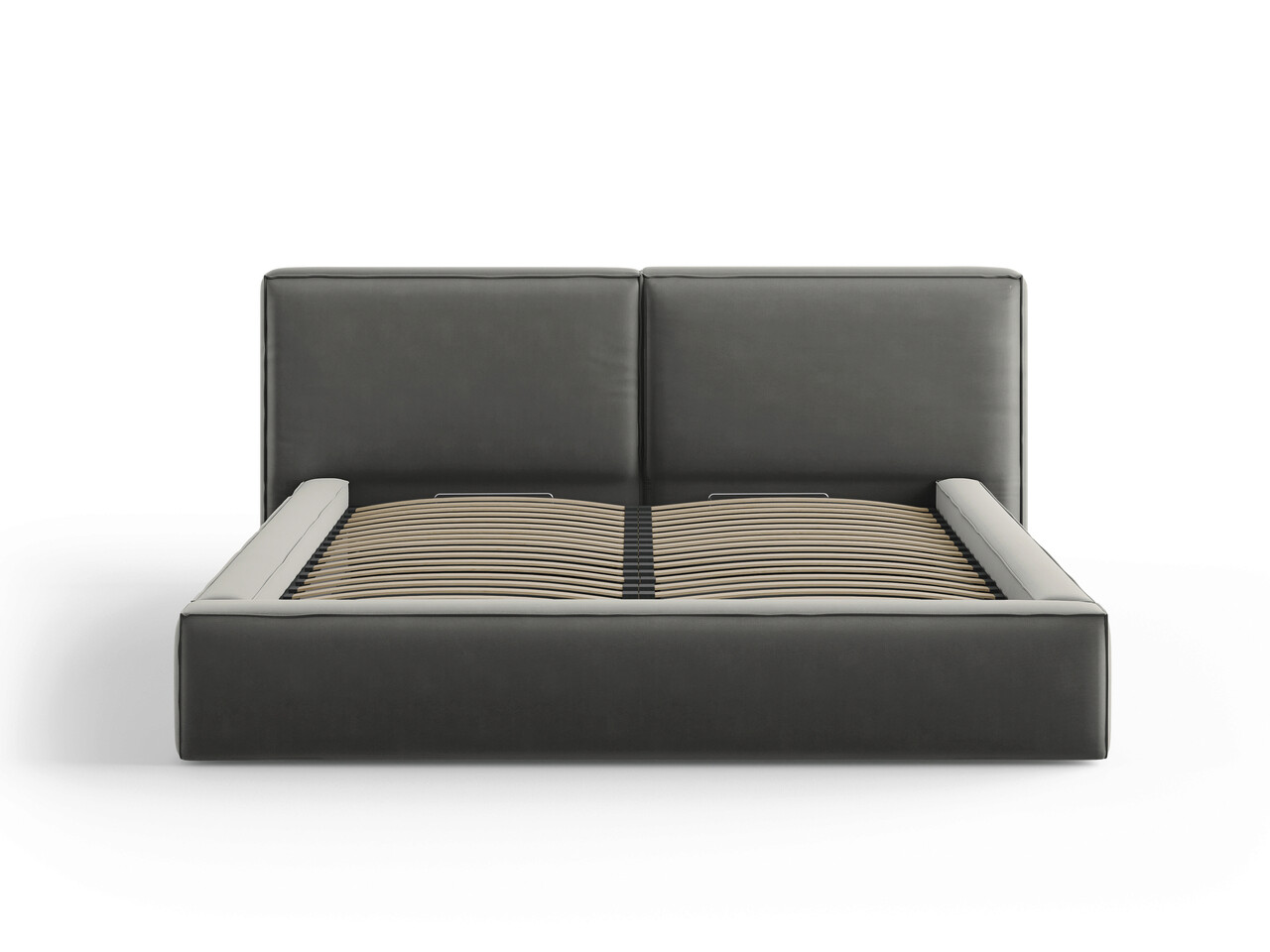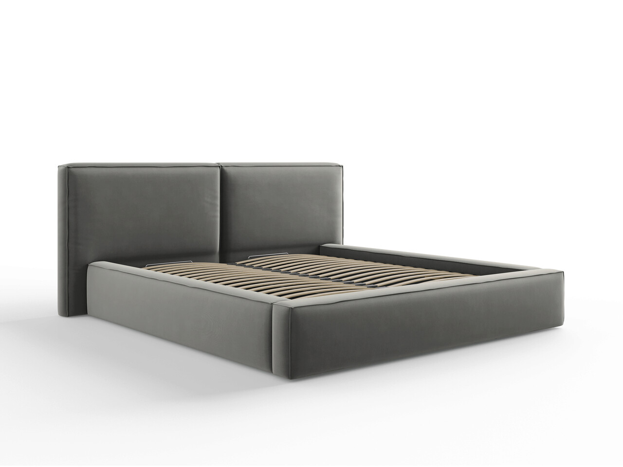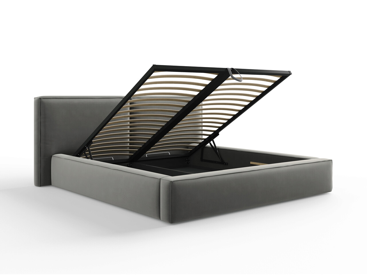 Pat tapitat cu tablie si lada depozitare, Jodie, Micadoni Home, BL, 180x200 cm, catifea, gri deschis