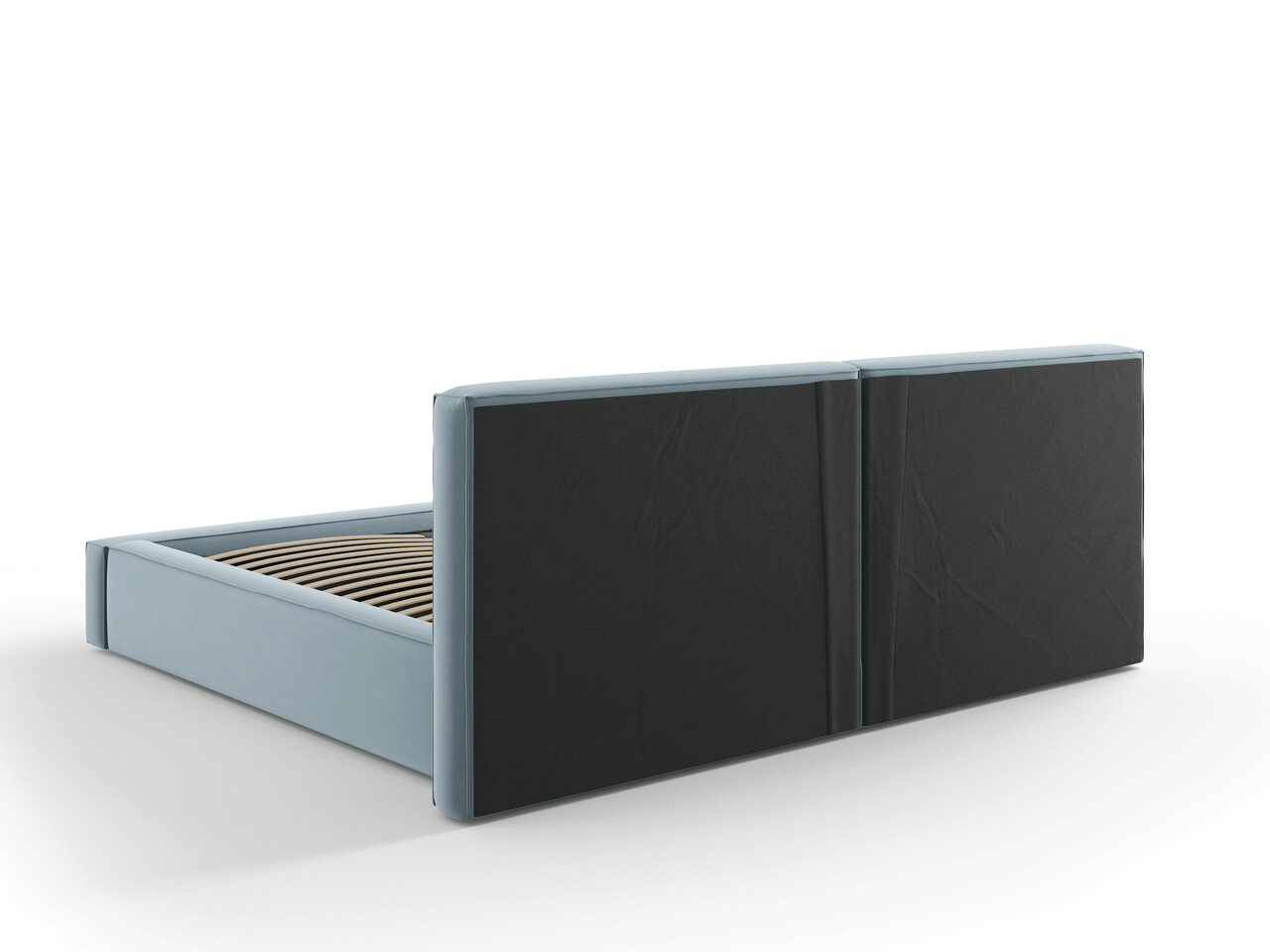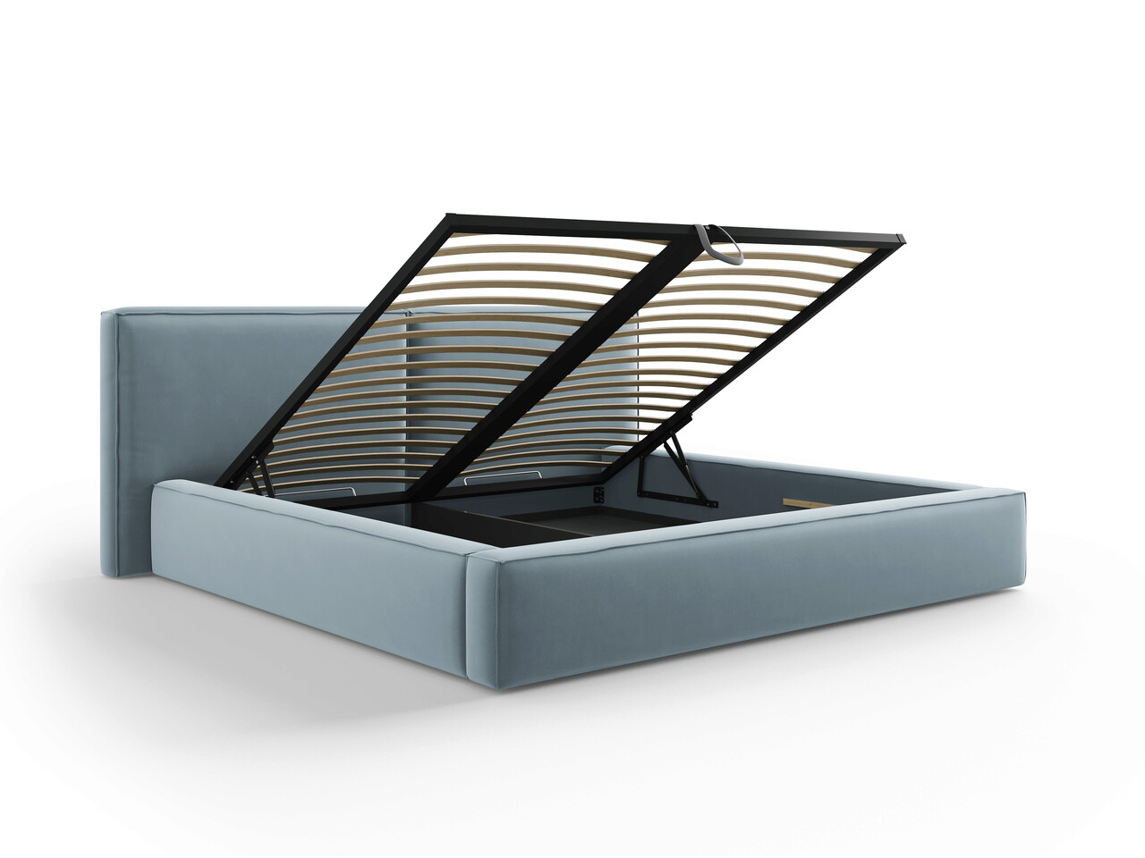 Pat tapitat cu tablie si lada depozitare, Jodie, Micadoni Home, BL, 200x200 cm, catifea, albastru deschis