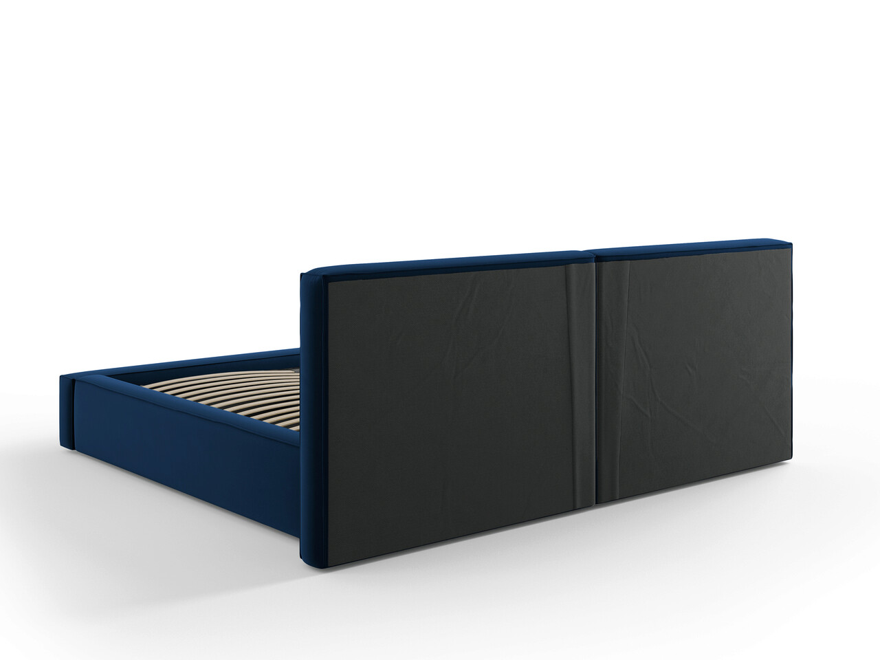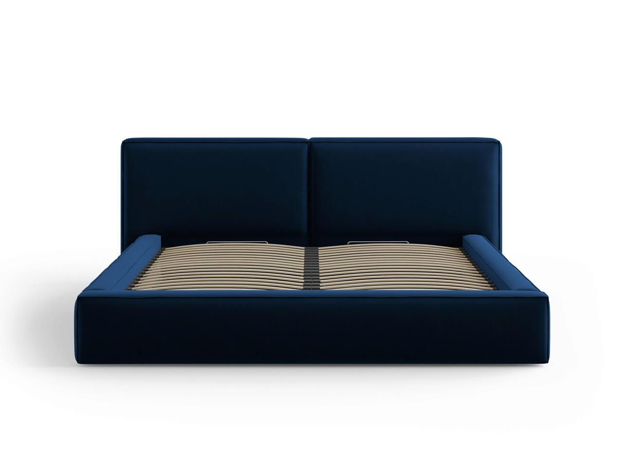 Pat tapitat cu tablie si lada depozitare, Jodie, Micadoni Home, BL, 200x200 cm, catifea, albastru regal
