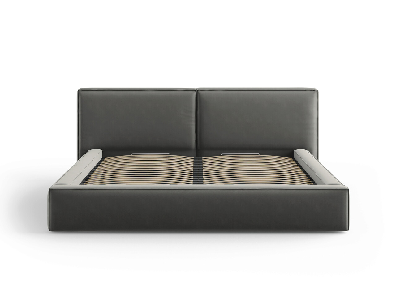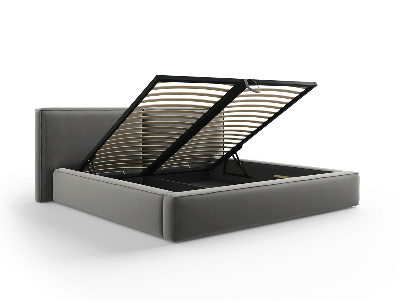 Pat tapitat cu tablie si lada depozitare, Jodie, Micadoni Home, BL, 200x200 cm, catifea, gri deschis
