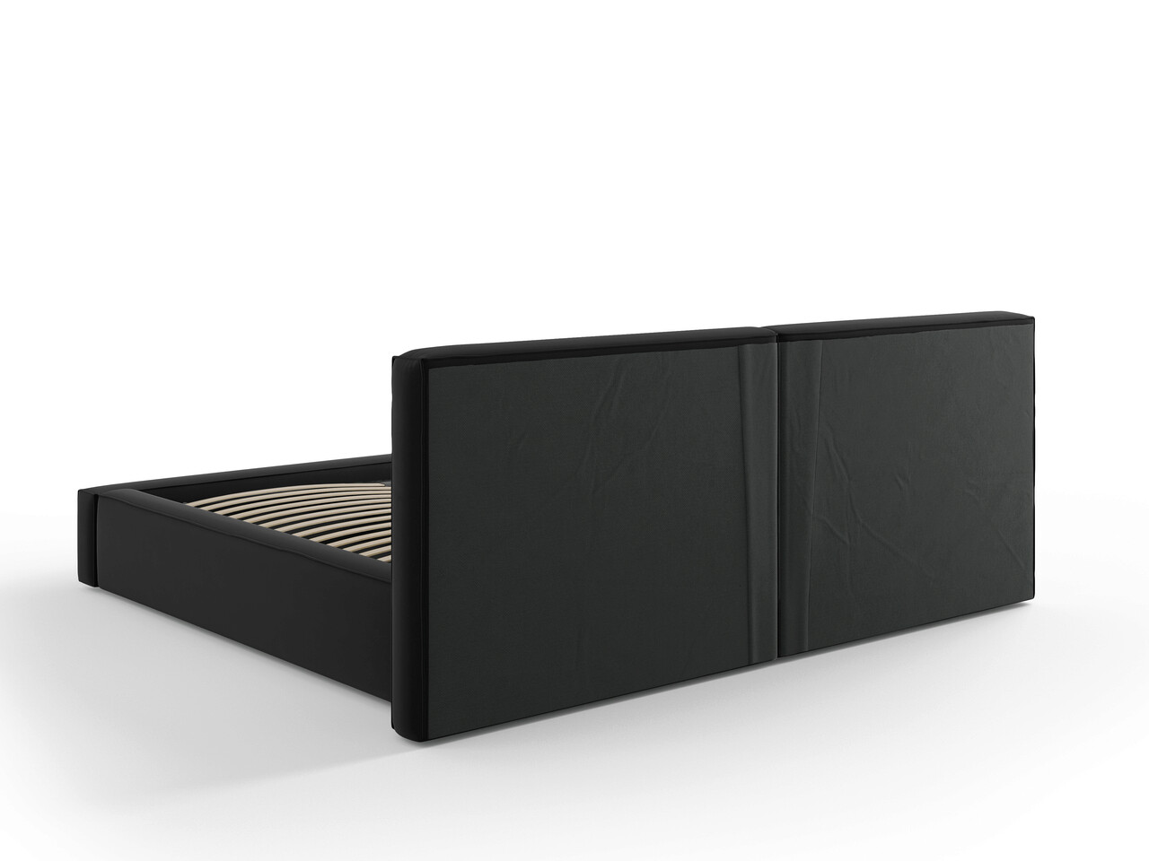 Pat tapitat cu tablie si lada depozitare, Jodie, Micadoni Home, BL, 200x200 cm, catifea, negru