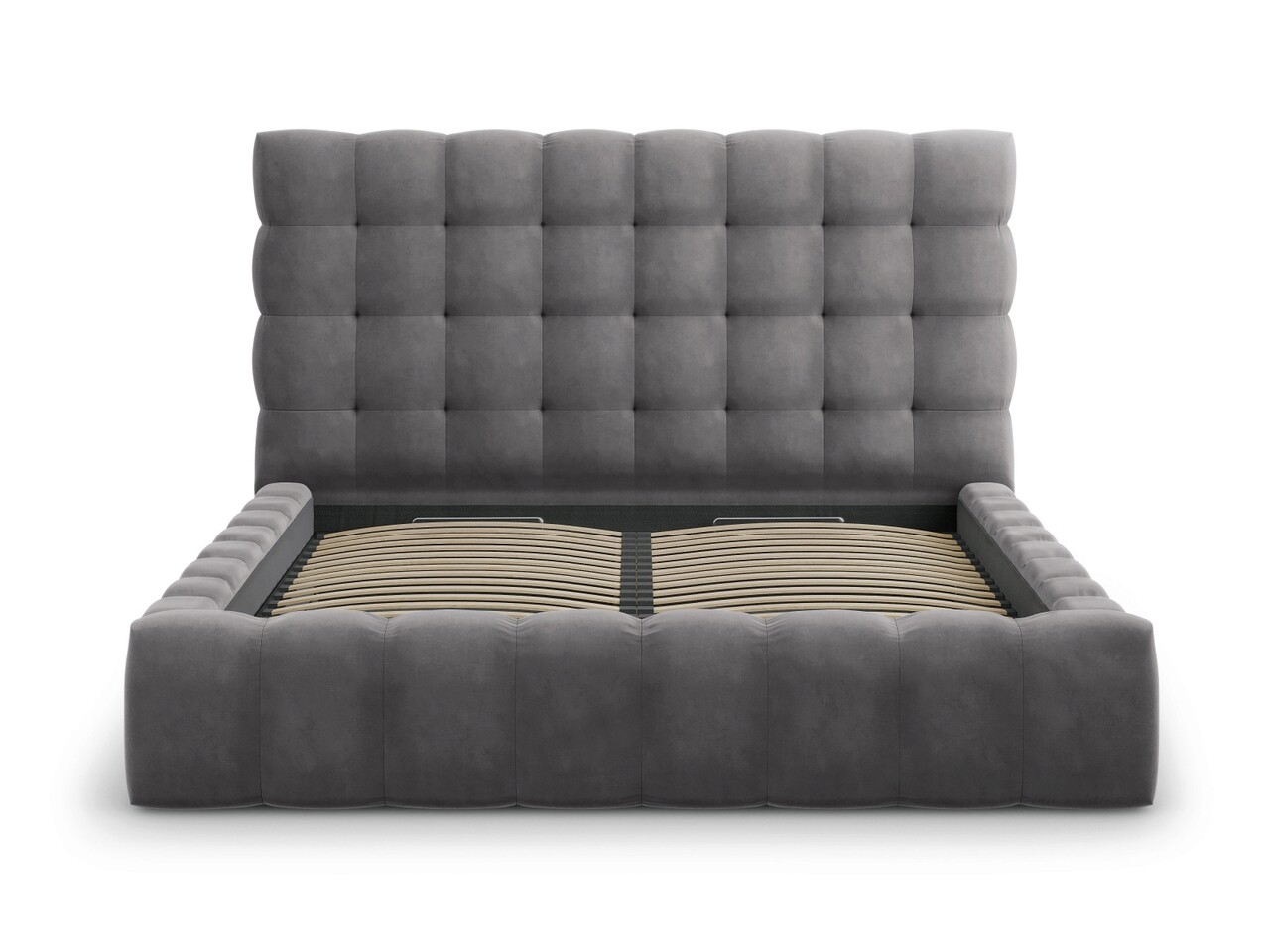 Pat tapitat cu tablie si lada depozitare, Mamaia, Micadoni Home, BL, 180x200 cm, catifea, gri