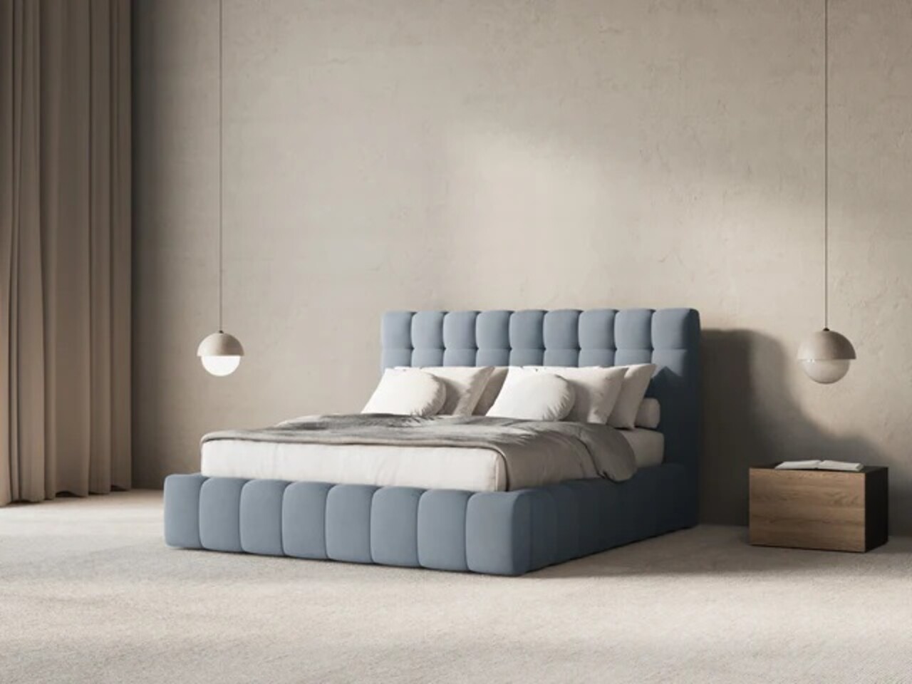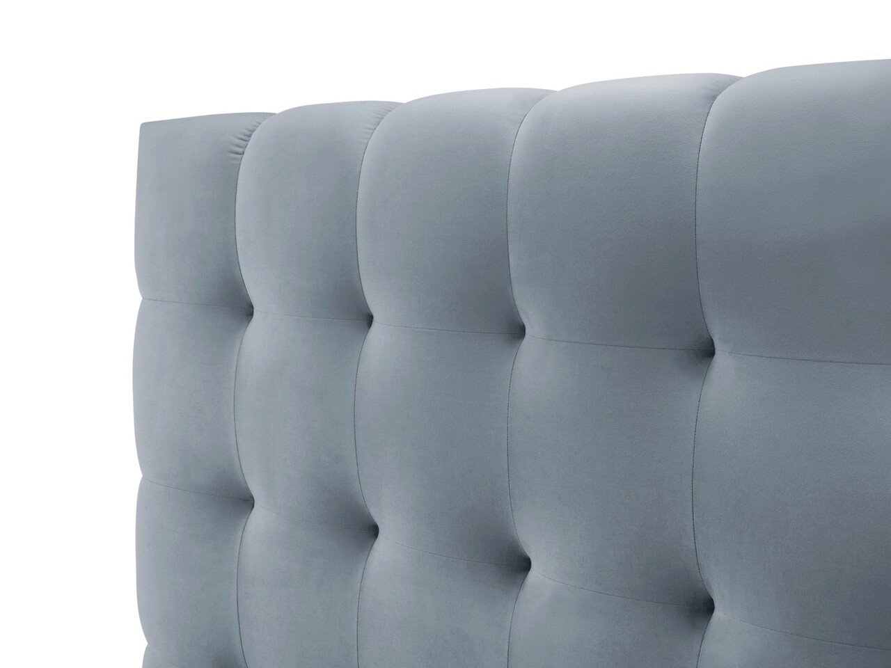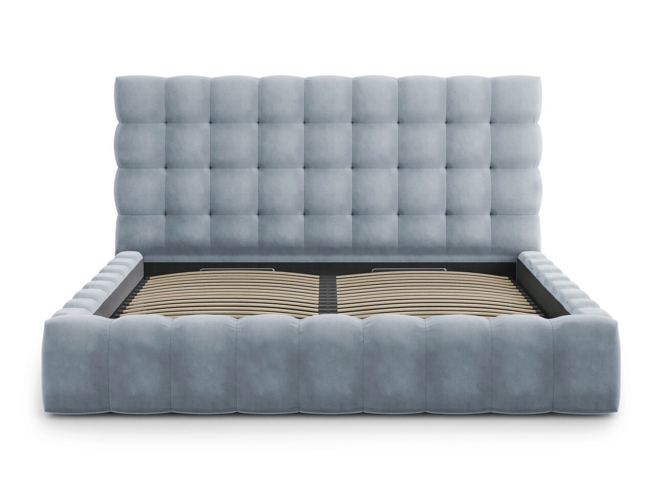 Pat tapitat cu tablie si lada depozitare, Mamaia, Micadoni Home, BL, 200x200 cm, catifea, albastru deschis