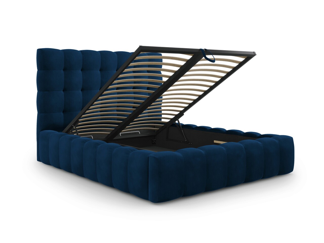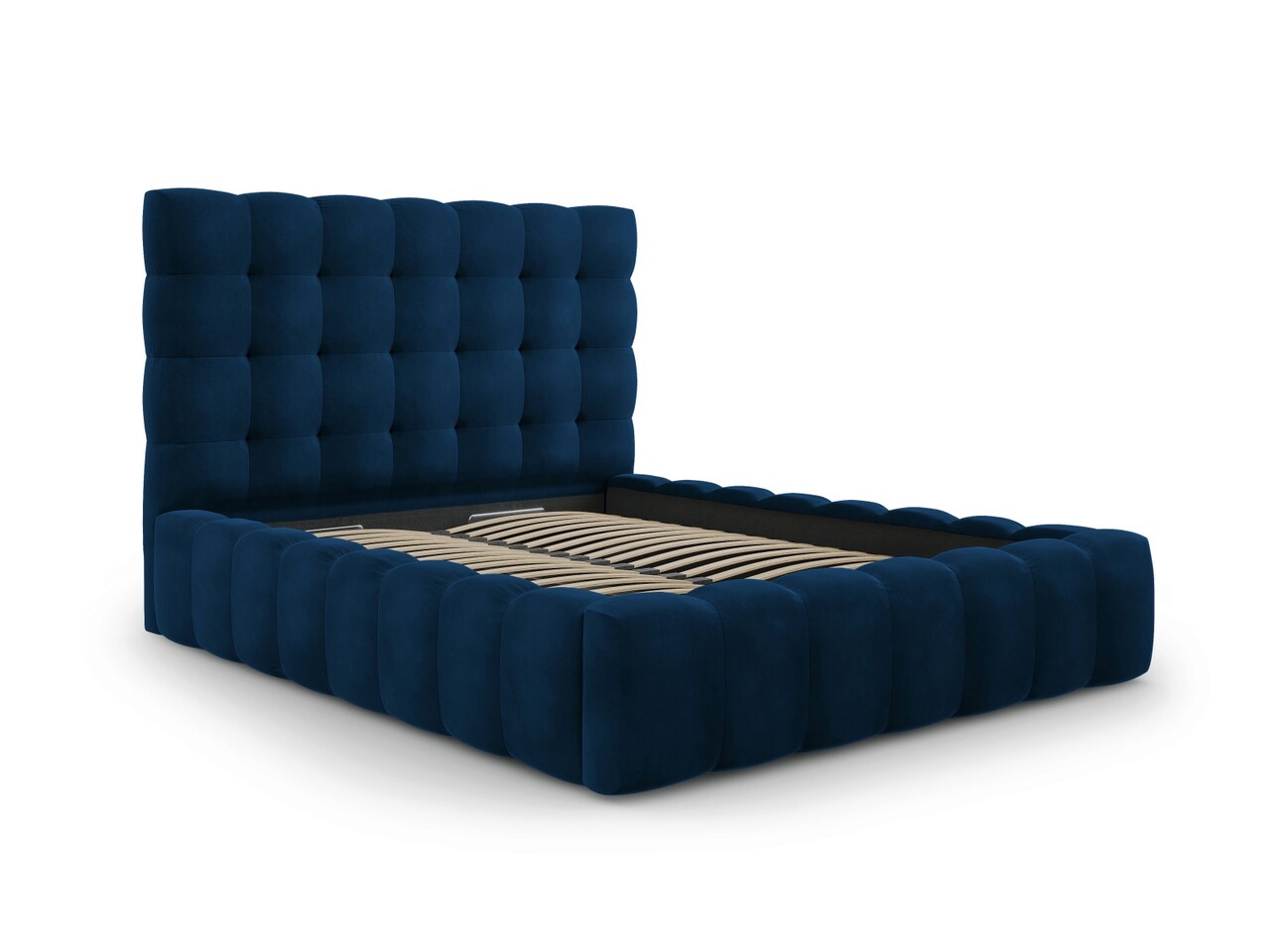 Pat tapitat cu tablie si lada depozitare, Mamaia, Micadoni Home, BL, 160x200 cm, catifea, albastru regal