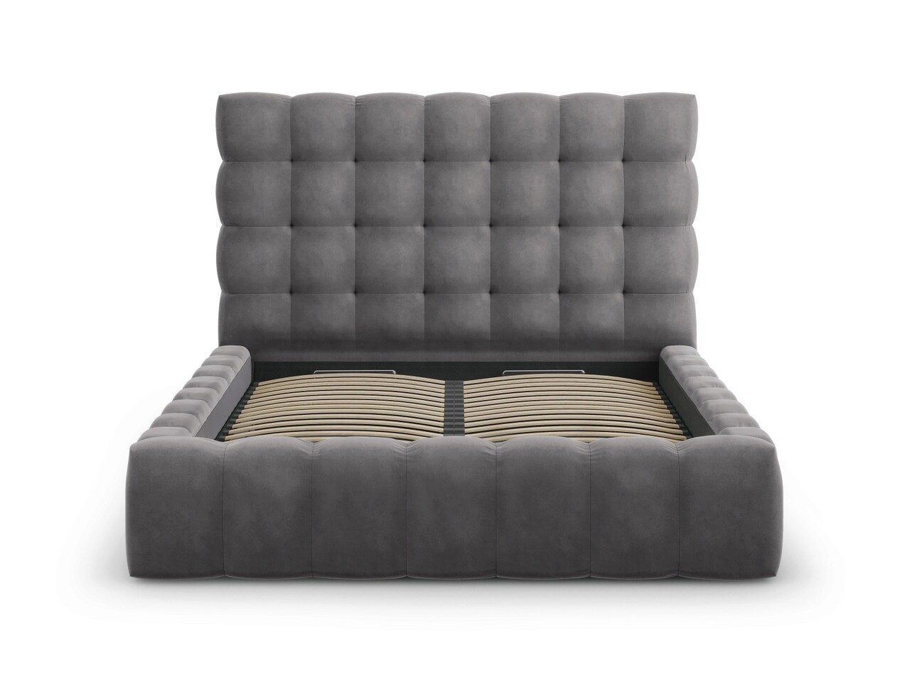 Pat tapitat cu tablie si lada depozitare, Mamaia, Micadoni Home, BL, 160x200 cm, catifea, gri