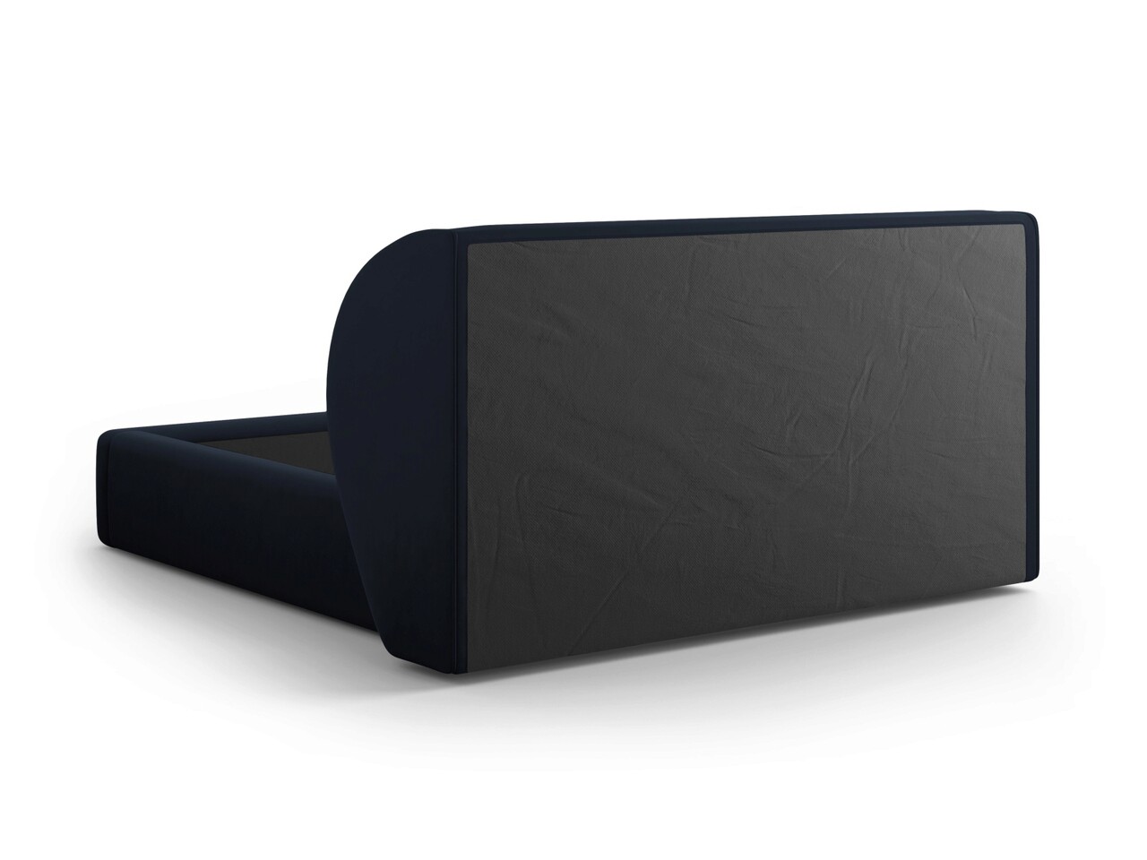 Pat tapitat cu tablie si lada depozitare, Miley, Micadoni Home, BL, 180x200 cm, catifea, albastru inchis