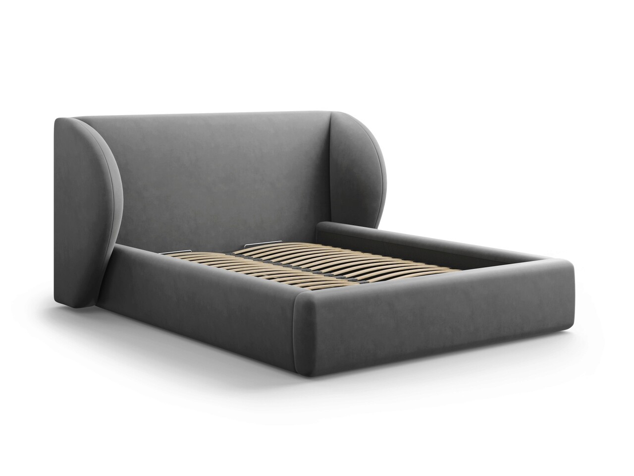 Pat tapitat cu tablie si lada depozitare, Miley, Micadoni Home, BL, 180x200 cm, catifea, gri