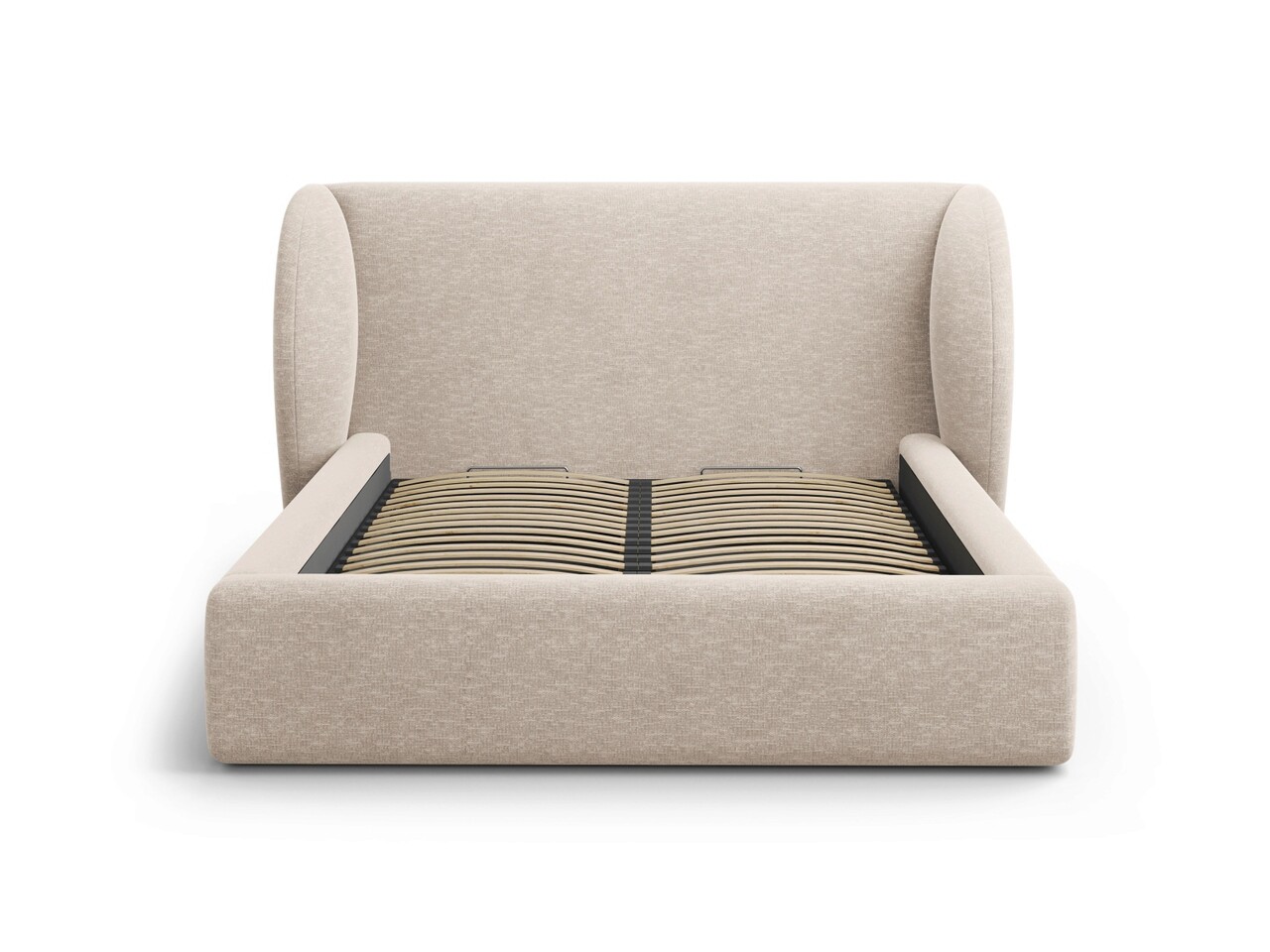 Pat tapitat cu tablie si lada depozitare, Miley, Micadoni Home, BL, 160x200 cm, poliester chenille, bej
