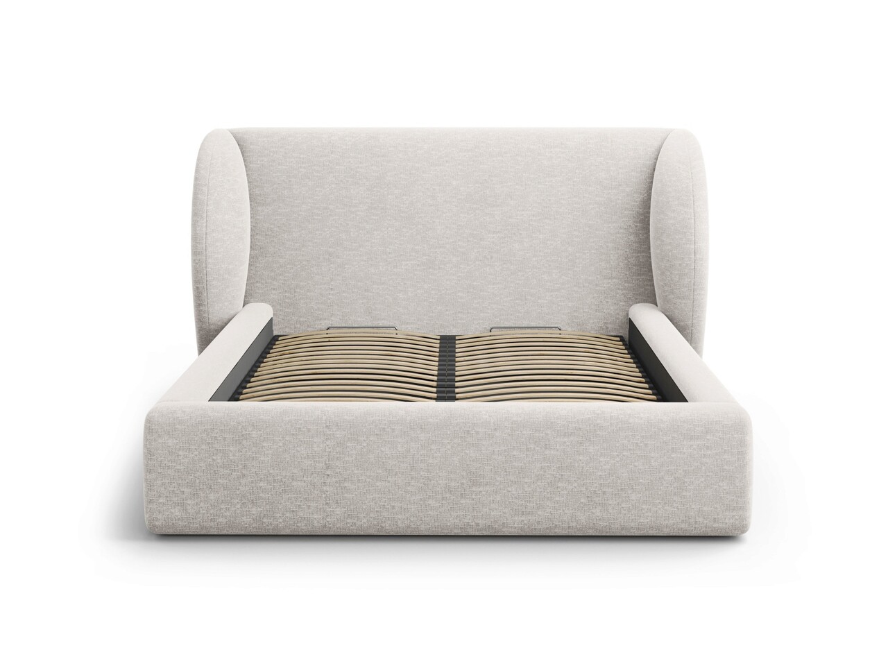 Pat tapitat cu tablie si lada depozitare, Miley, Micadoni Home, BL, 180x200 cm, poliester chenille, gri deschis