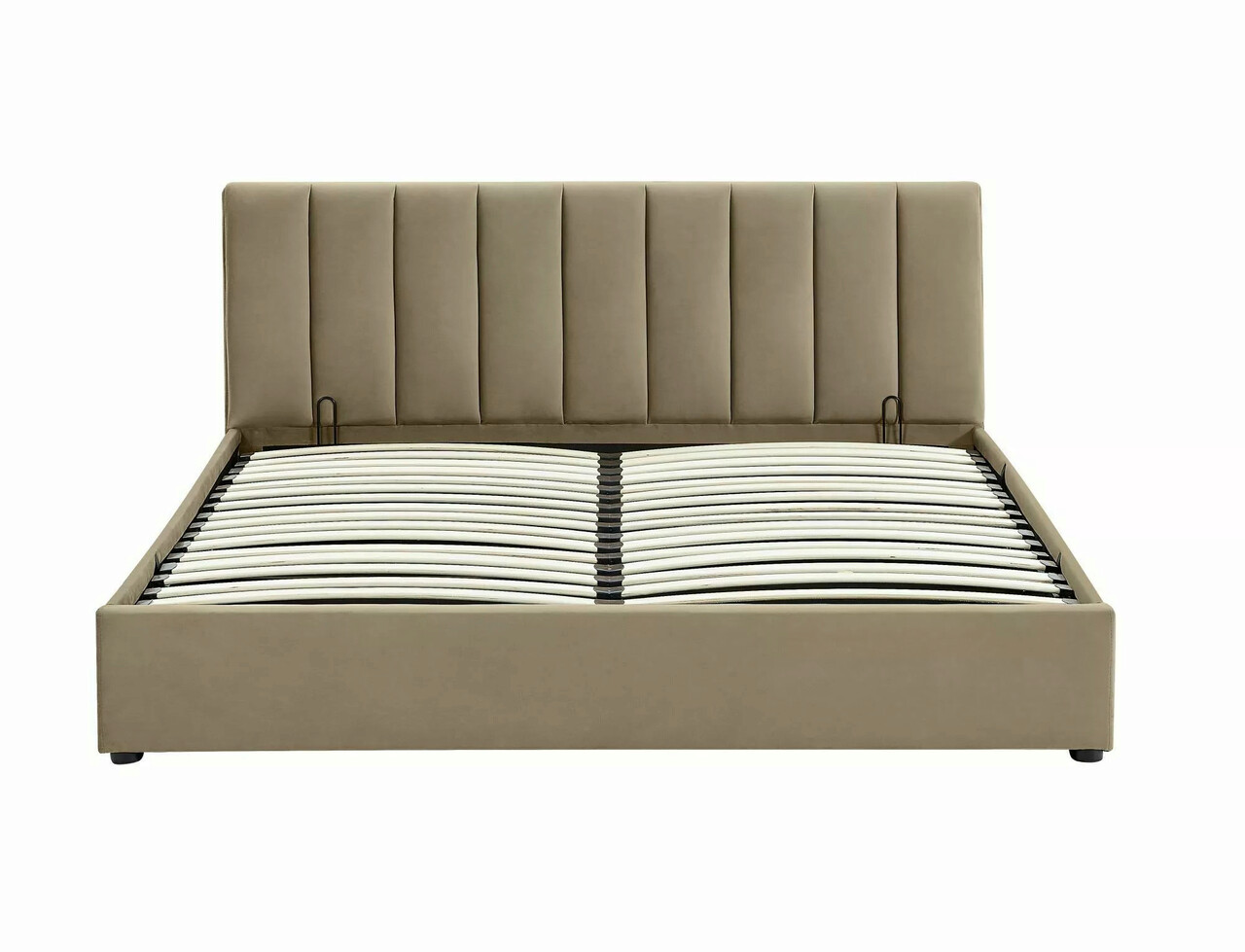 Pat tapitat, cu tablie si lada depozitare Montreal Velvet, Signal, 120x200 cm, catifea, bej