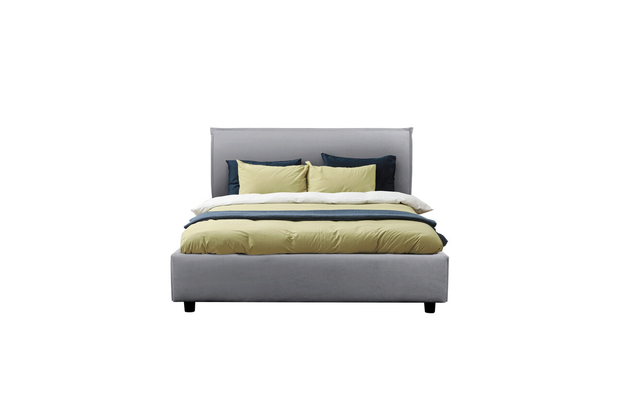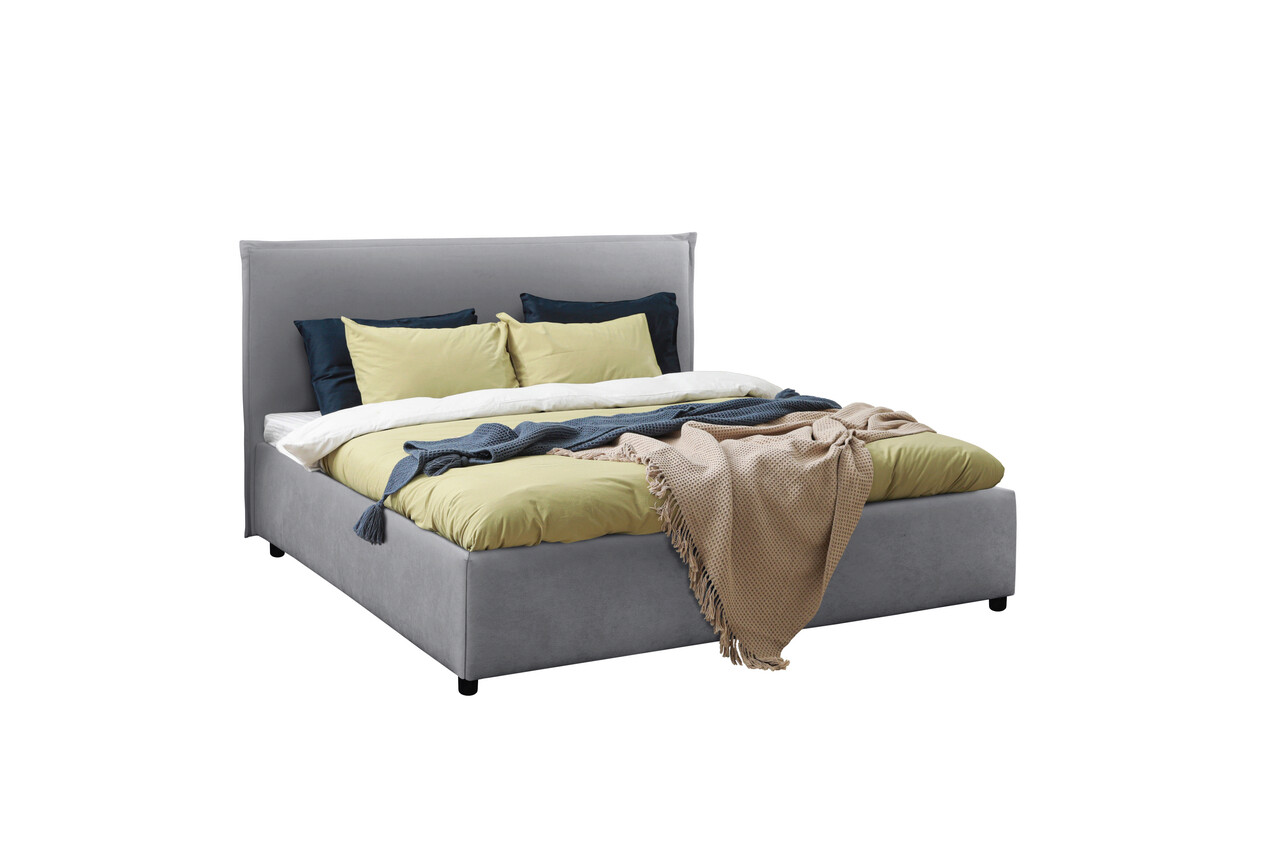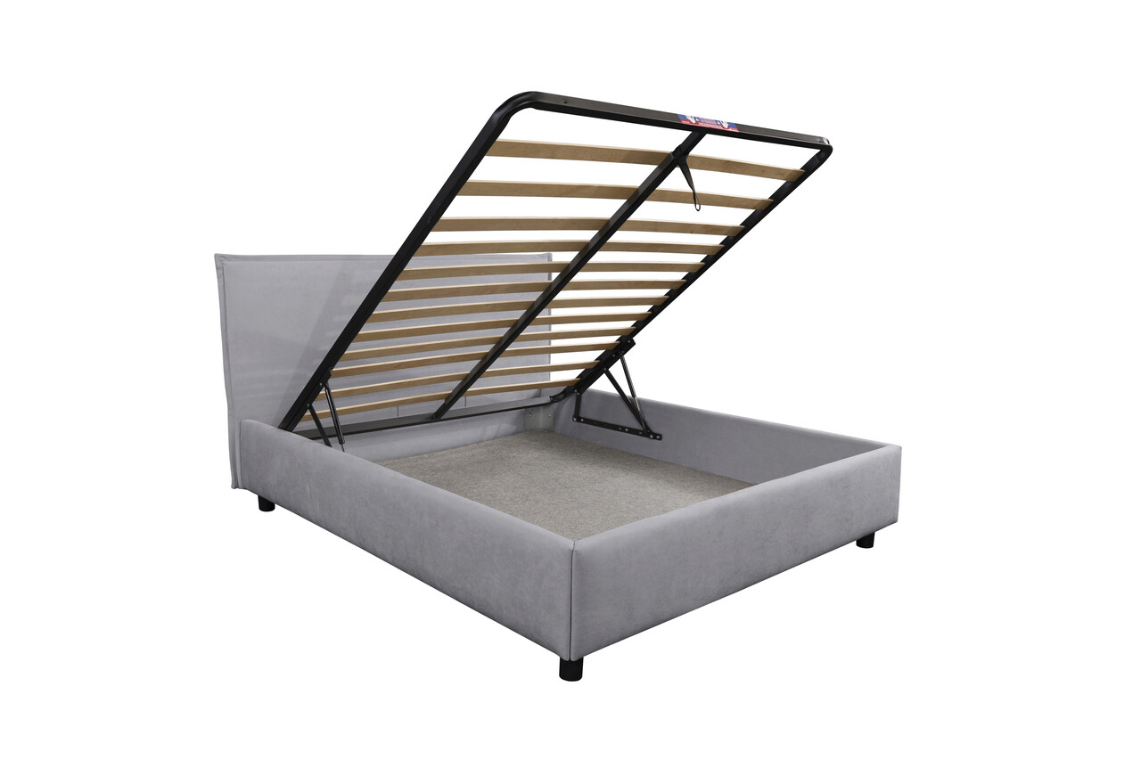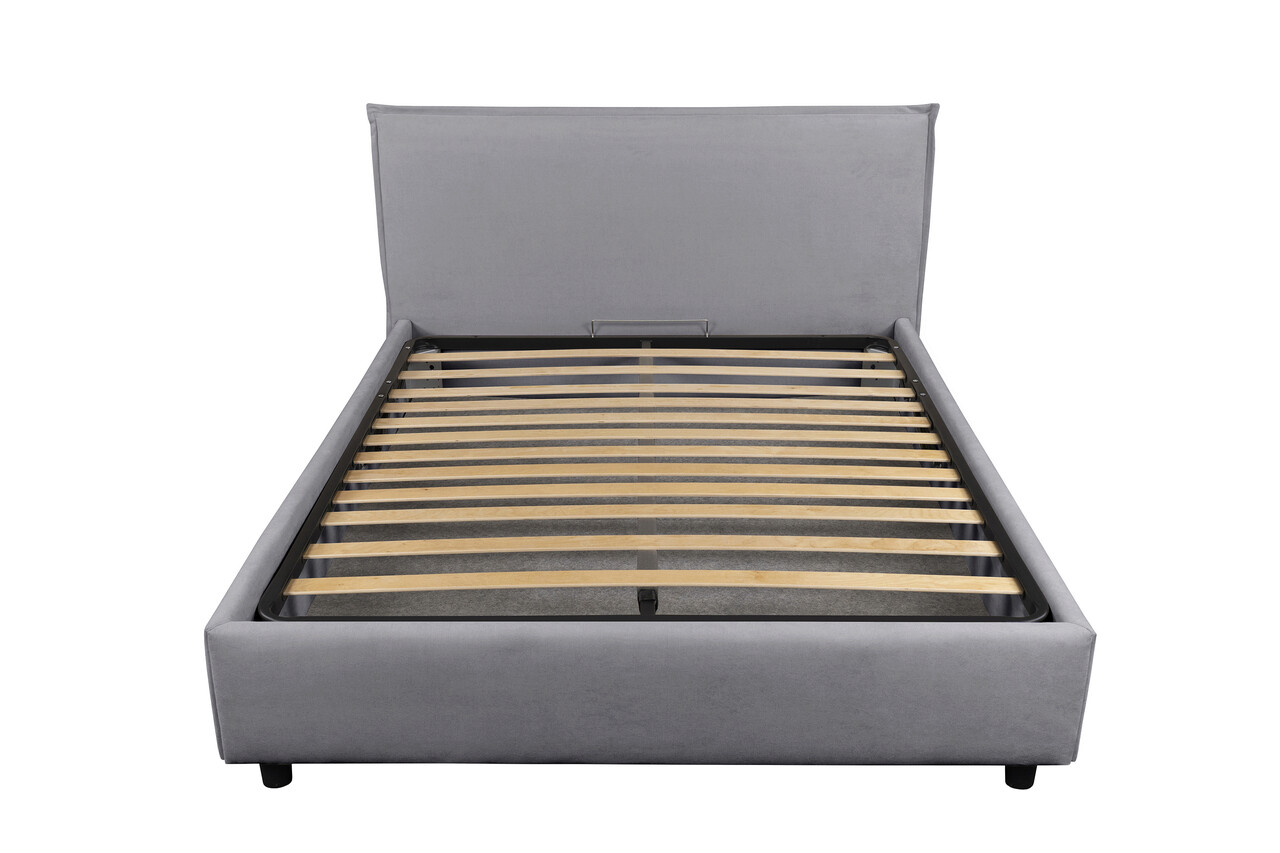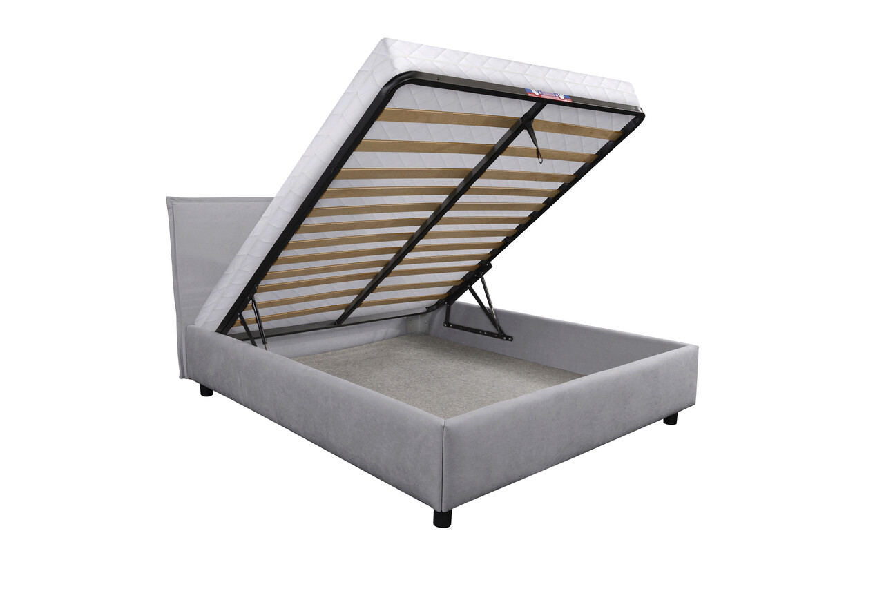 Pat tapitat Denver, 160x200 cm, somiera rabatabila, spatiu depozitare, gri