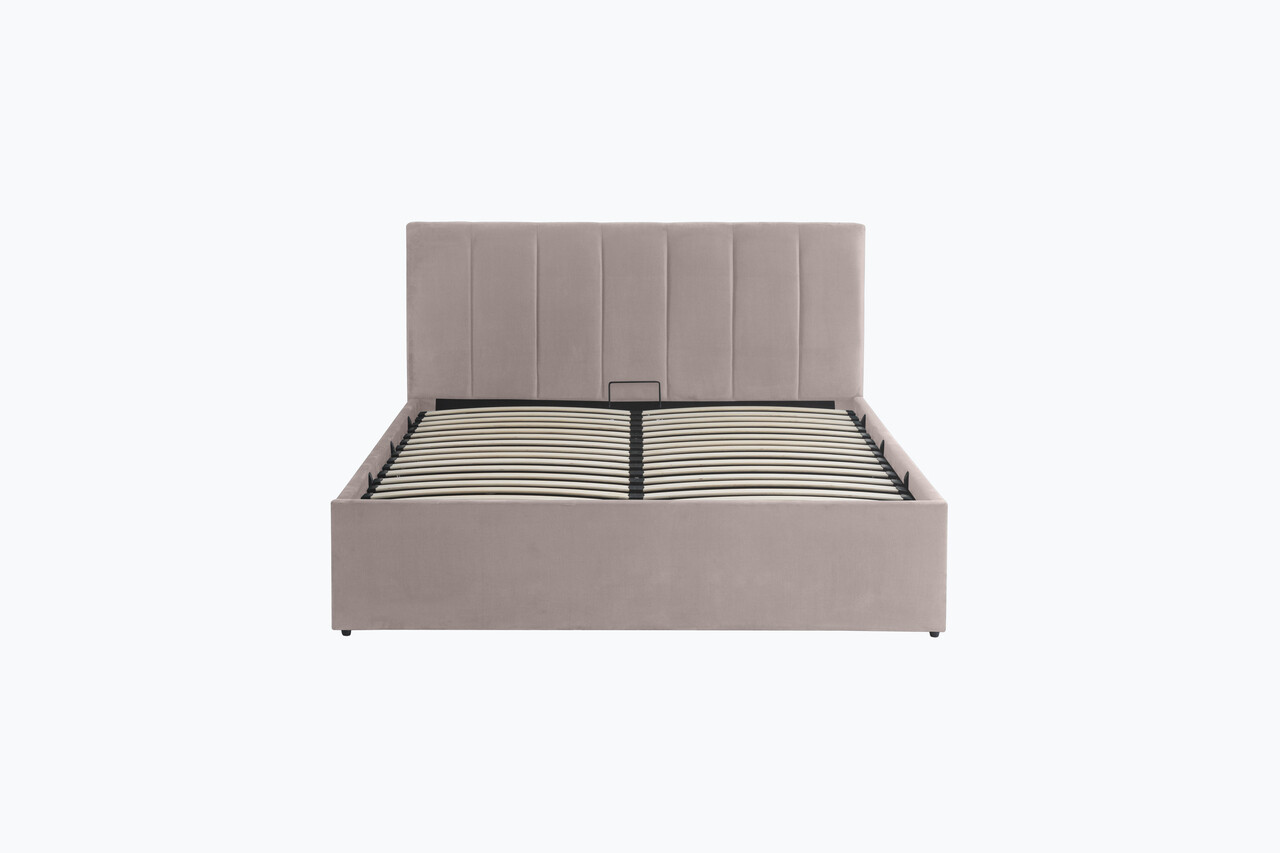 Spatiu de depozitare: Cu o somiera rabatabila ce ofera spatiu suplimentar pentru depozitare, acest pat este solutia ideala pentru optimizarea spatiului din camera. Baza patului este finisata cu material textil, pentru un aspect placut si uniform.
