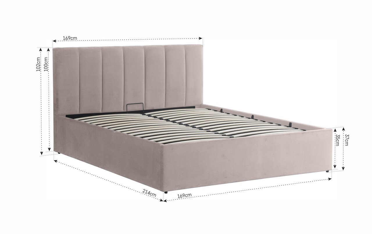 Dimensiuni: Cu o latime de 169 cm, o inaltime de 102 cm si o lungime de 214 cm, acest pat este ideal pentru a fi amplasat intr-un spatiu generos.