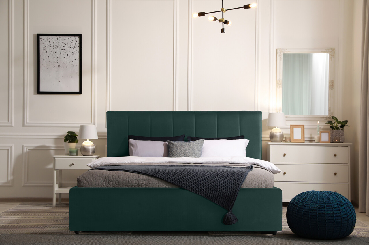 Practic si confortabil, patul tapitat Frisco de la Bedora este o piesa de mobilier perfecta pentru orice dormitor. Cu dimensiunile sale de 180x200 cm, acest pat ofera suficient spatiu pentru odihna confortabila. Culoarea verde inchis se potriveste cu diverse stiluri de decor, aducand o nota eleganta in camera.