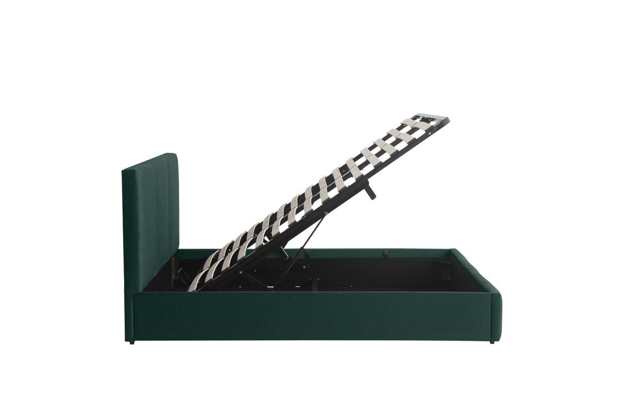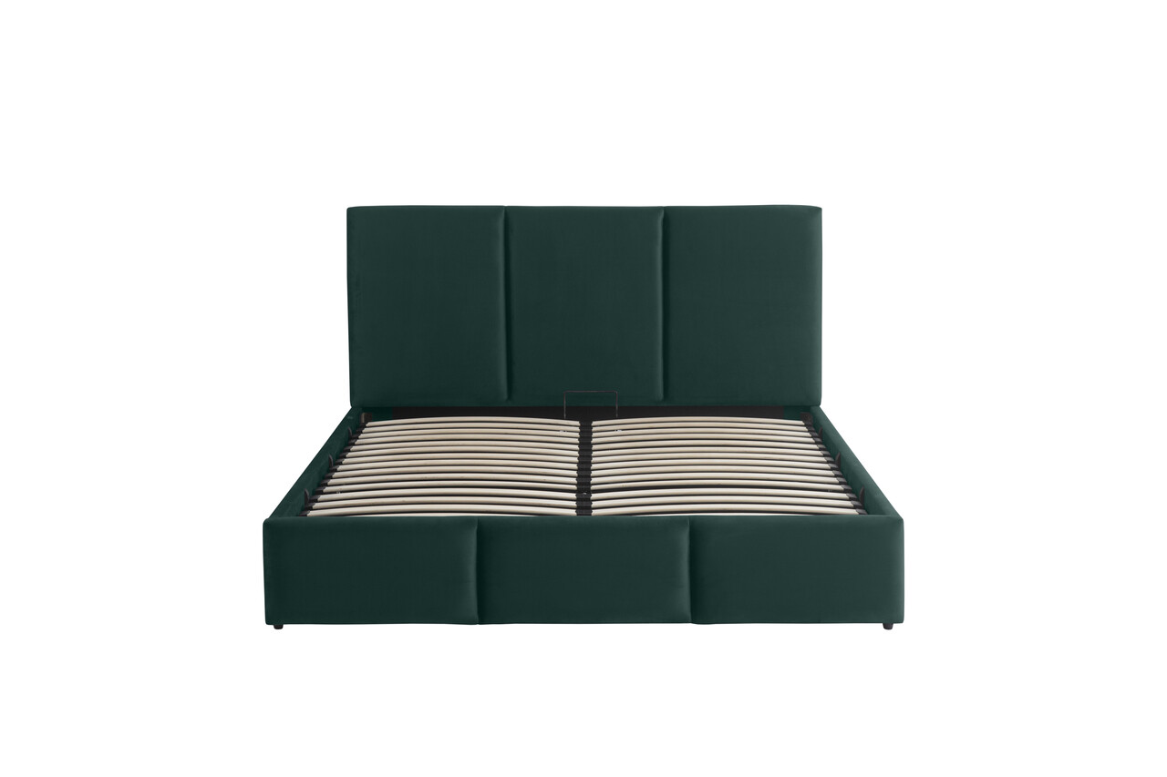 Pat tapitat Houston, 140x200 cm, somiera rabatabila, spatiu depozitare, verde inchis