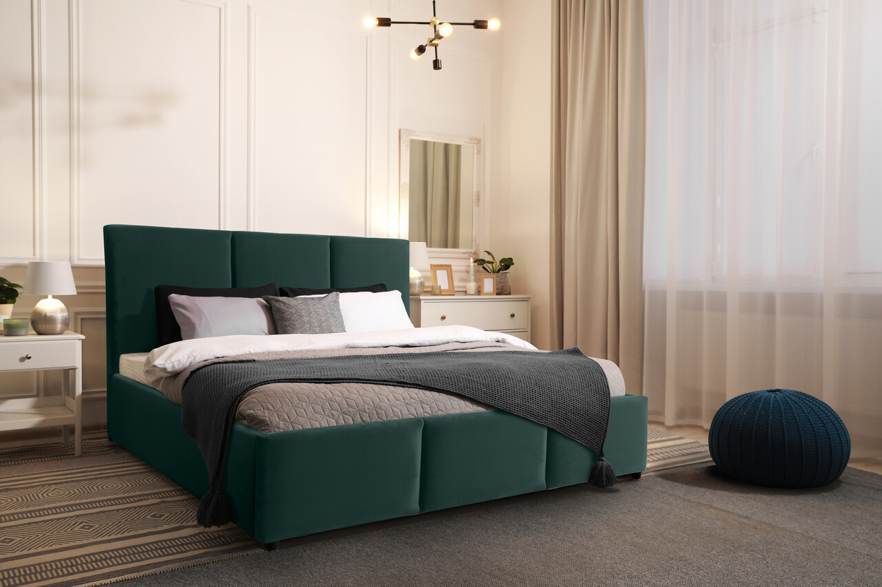 Patul tapitat Houston de la Bedora este o piesa de mobilier eleganta si practica, perfecta pentru orice dormitor. Cu dimensiunile sale de 140x200 cm, acest pat ofera suficient spatiu pentru odihna confortabila. Culoarea verde inchis se potriveste cu diverse stiluri de decor, aducand o nota eleganta in camera.
