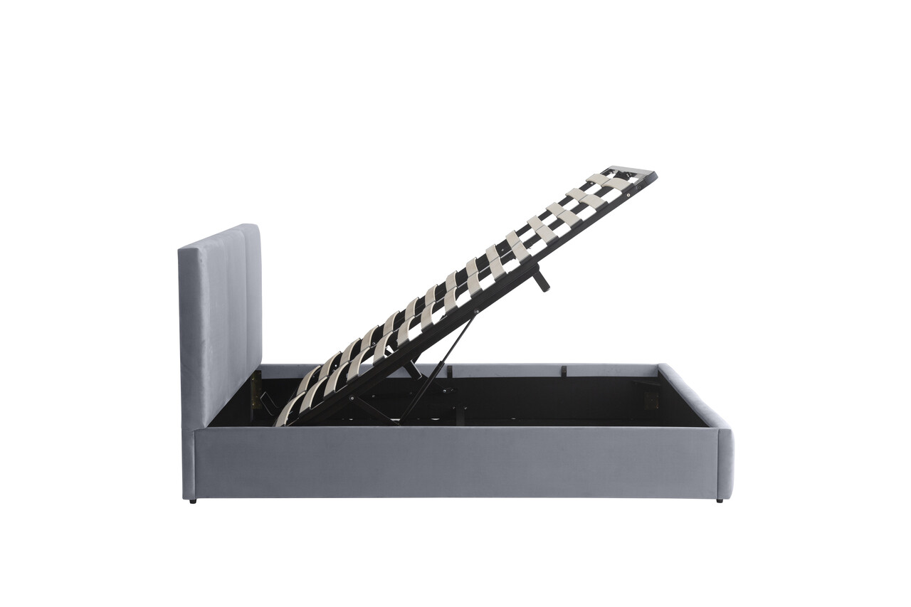 Pat tapitat Houston, 180x200 cm, somiera rabatabila, spatiu depozitare, gri