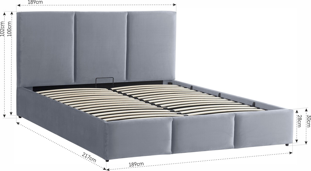 Dimensiuni: Cu o latime de 189 cm, o inaltime de 102 cm si o lungime de 217 cm, acest pat este ideal pentru a fi amplasat intr-un spatiu generos.