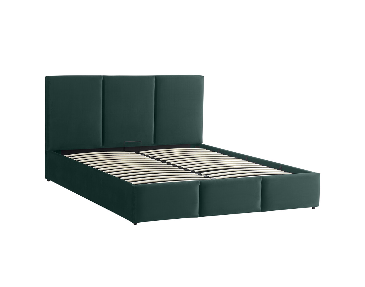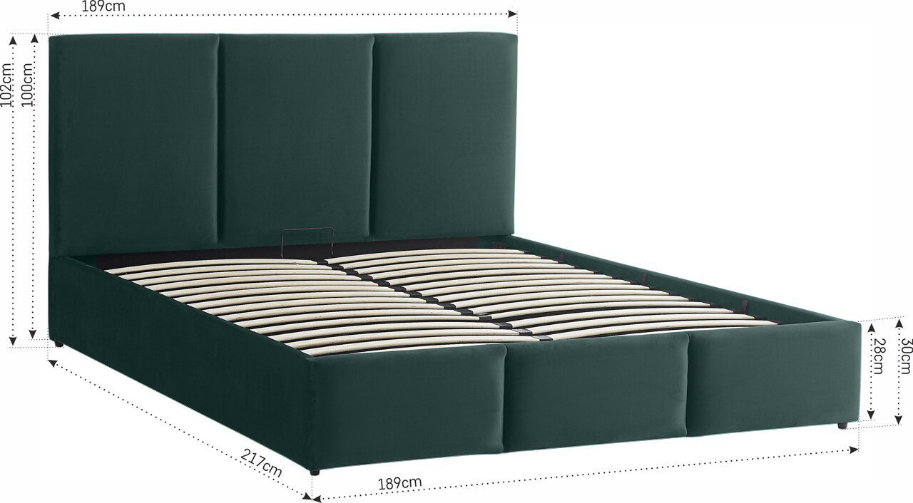 Pat tapitat Houston, 180x200 cm, somiera rabatabila, spatiu depozitare, verde inchis