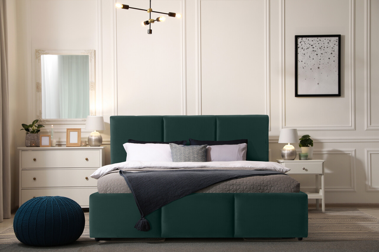 Patul tapitat Houston de la Bedora este o piesa de mobilier eleganta si practica, perfecta pentru orice dormitor. Cu dimensiunile sale de 180x200 cm, acest pat ofera suficient spatiu pentru odihna confortabila. Culoarea verde inchis se potriveste cu diverse stiluri de decor, aducand o nota eleganta in camera.