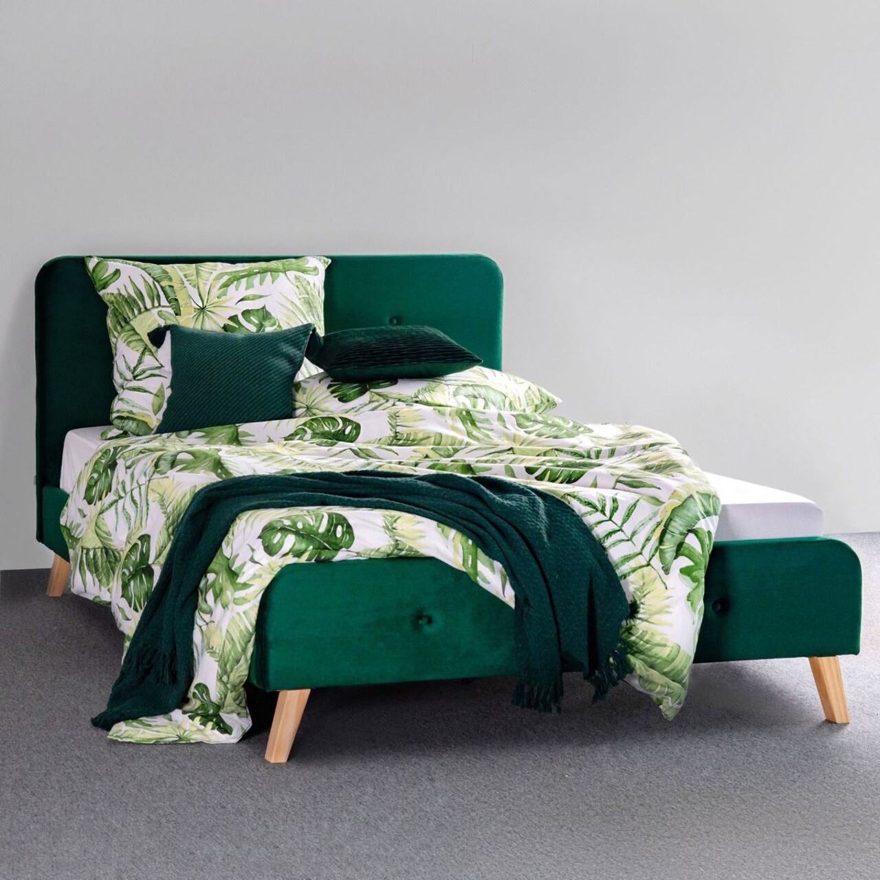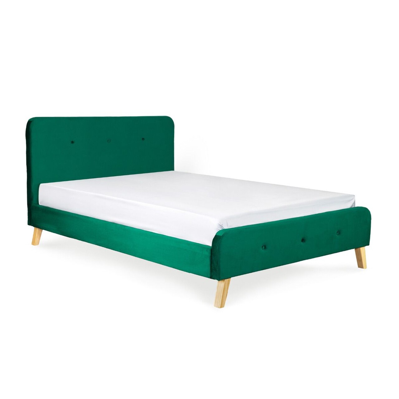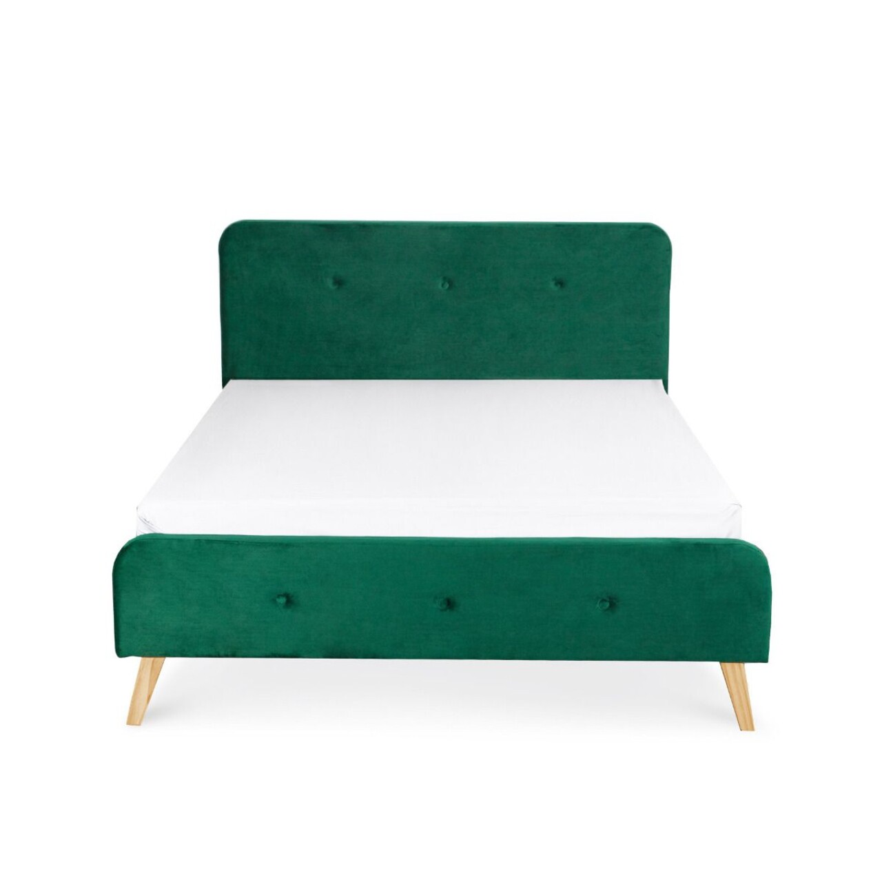 Pat tapitat Mikkel, Homla, 140x200 cm, metal/MDF/catifea din poliester, verde