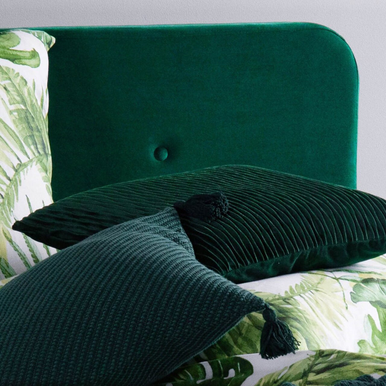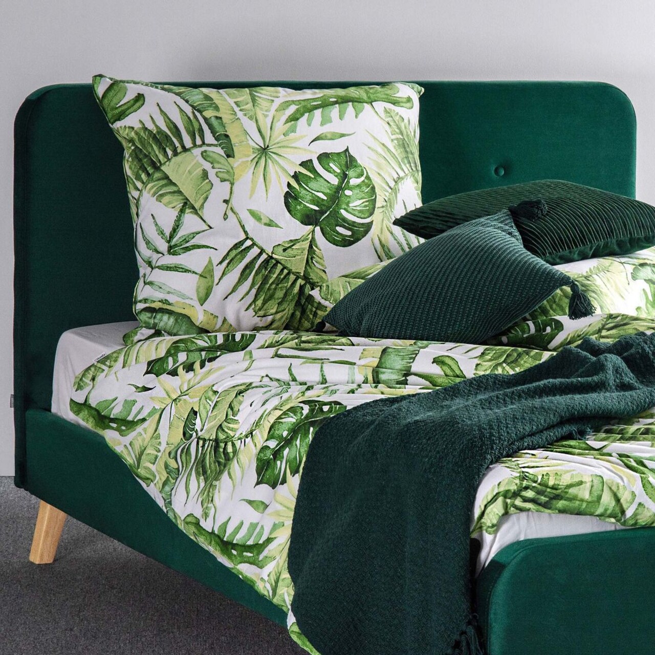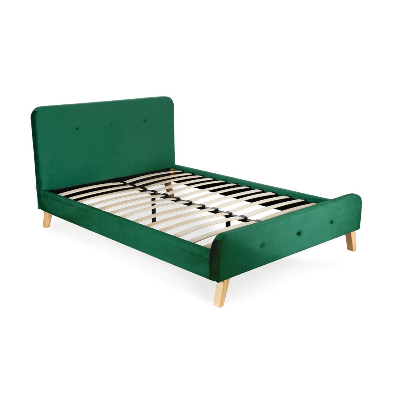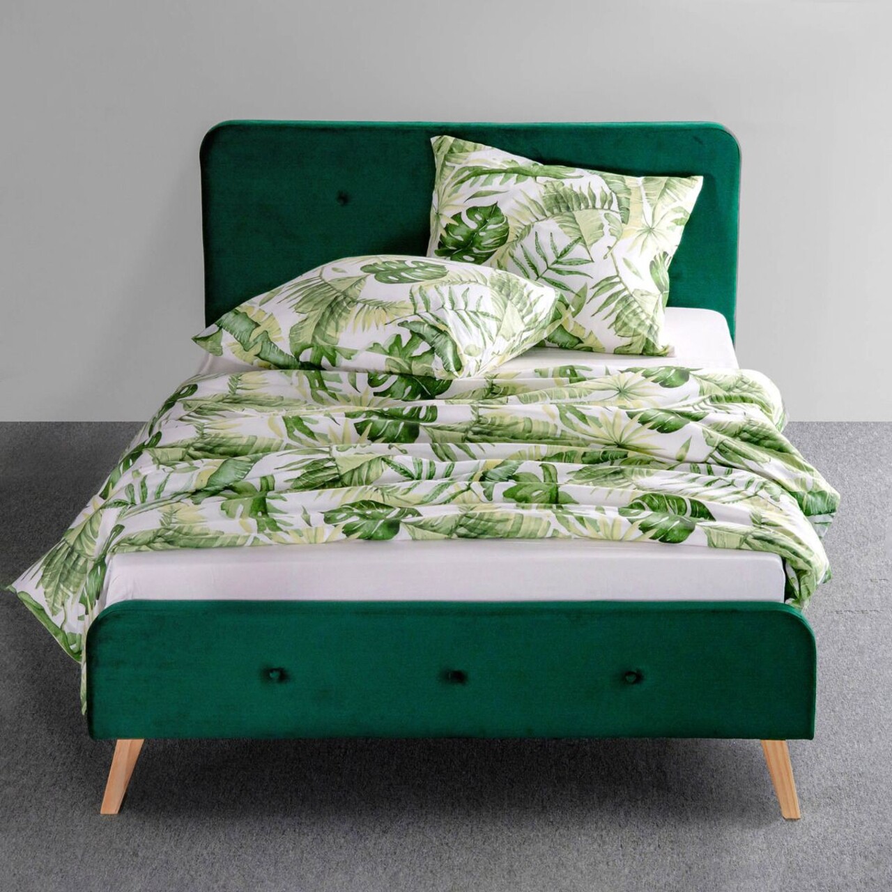 Pat tapitat Mikkel, Homla, 140x200 cm, metal/MDF/catifea din poliester, verde