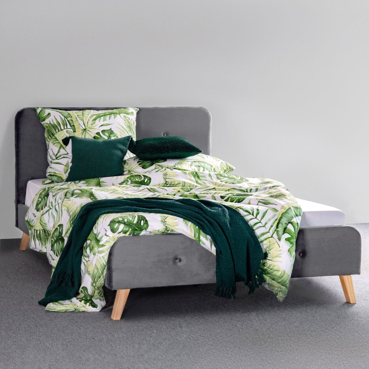 Pat tapitat Mikkel, Homla, 140x200 cm, metal/MDF/catifea din poliester, gri